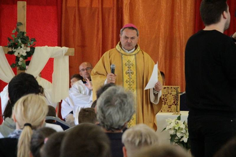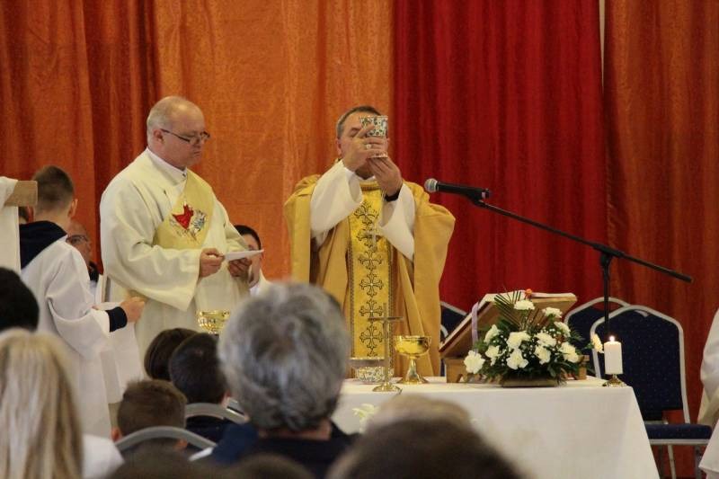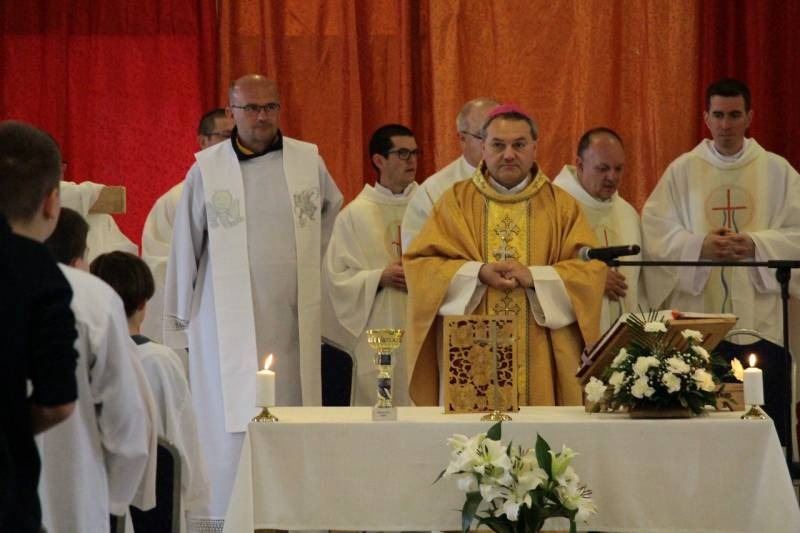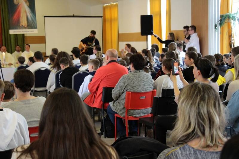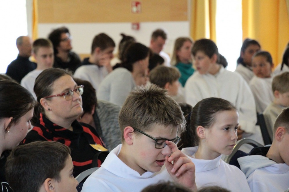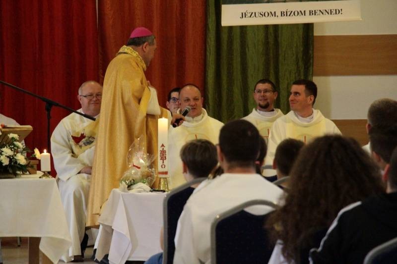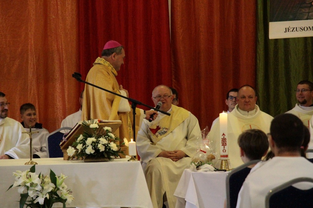 A találozó foglalkozásai 14.30-ig tartottak, amikor a zárómisére való felkészülés következett. A szentmisét Felföldi László megyéspüspök celebrálta, a jelenlevő papok koncelebrálásával. Püspök atya értékes gondolatokkal gazdagította a ministránsokat, például Jézusnak az irántunk való szeretete, hiszen a ministránsnap témájaként az irgalmasság – emellett másnap az Isteni irgalmasság vasárnapját ünnepeltük.