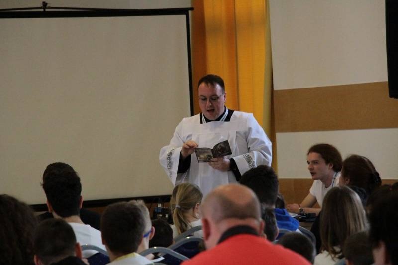 A referatúra munkatársai néhány héttel korábban bejárták a helyszínül választott Béri Balogh Ádám Katolikus Gimnáziumot, valamint felmérték, milyen eszközökre van szükség a zökkenőmentes szervezéshez. Miután a feladatokat kiosztottuk egymás között, a találkozót megelőző este, április 14-én Tamásiba utaztunk. A szállásunk a rendezvény helyszínéül szolgáló iskola kollégiuma volt, ahol a helyi hitoktatók bőséges, meleg vacsorával vártak bennünket.