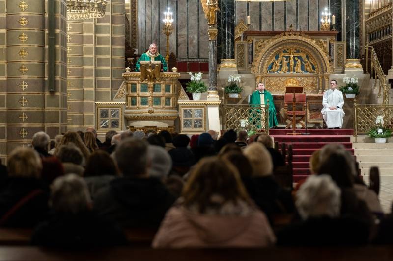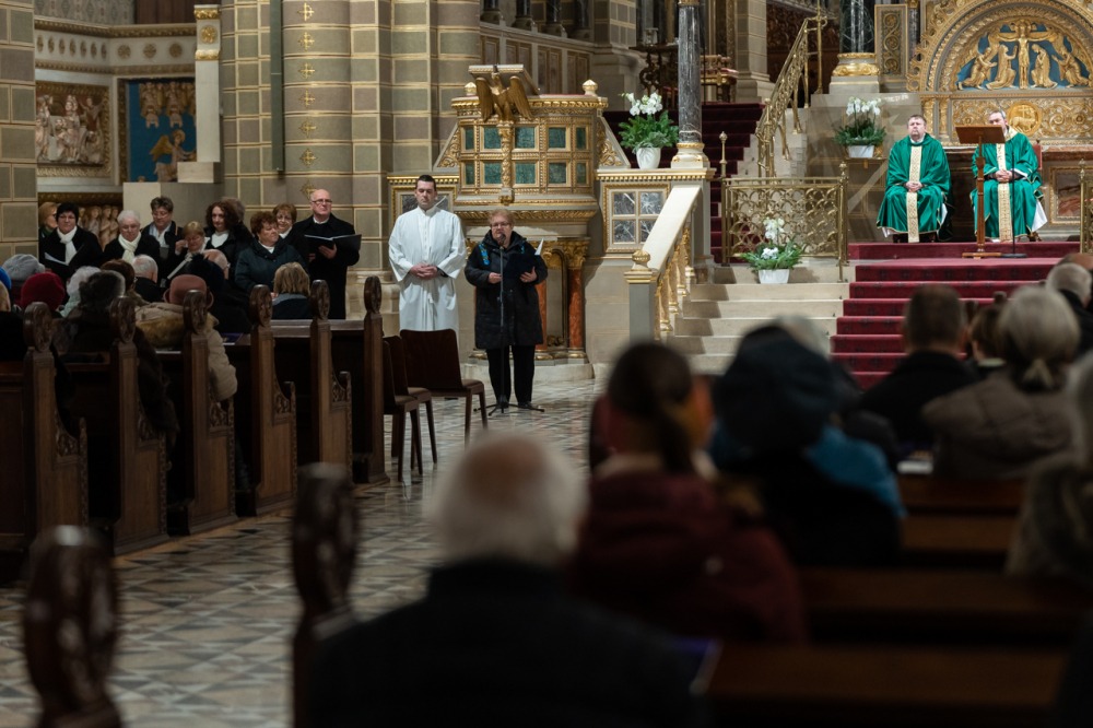 A Pécsi Egyházmegye anyatemploma minden hónap harmadik vasárnapján német nyelvű szentmisének ad otthont a területen élő német nemzetiségű hívek számára. Január 18-án az egyházmegye területéről elhurcolt és kitelepített svábokra emlékeztek. A szentmisére meghívást kapott Felföldi László pécsi megyéspüspök, koncelebrált Wigand István bonyhádi plébános. A zenei szolgálatban közreműködött a bonyhádi Rónai Józsefné Német Nemzetiségi Kórus.