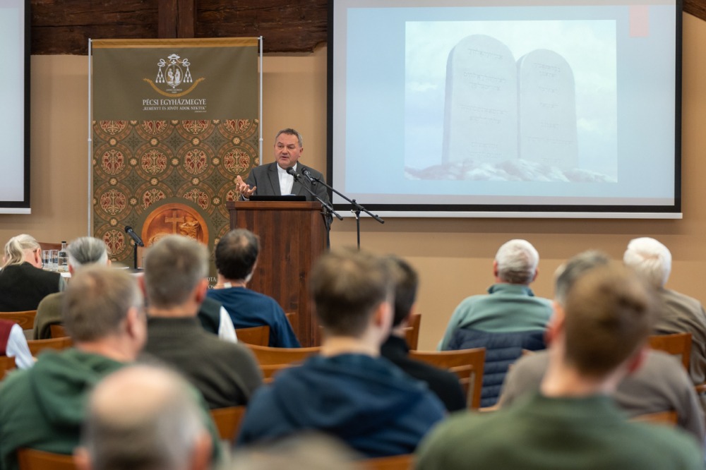 A Szentírás a témája a férfitalálkozók idei harmadik sorozatának, melyben január 30-i pécsi alkalmának résztvevői nem a teljességre törekvő tudományos, ismeretközlő előadás, hanem lelkipásztori buzdítás részesei lehettek. Felföldi László püspök ezúttal abban nyújtott támpontot a férfiközösség számára, hogyan lehet és miért érdemes meghallani Isten szavát személyes életünkben.
