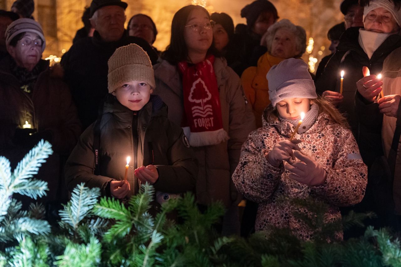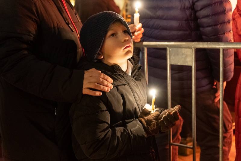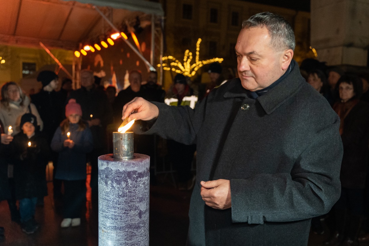 A lángot a gyertyagyújtást megelőzően a Szállást keres a Szent Család című ájtatosság résztvevői hozták magukkal a város főterére.