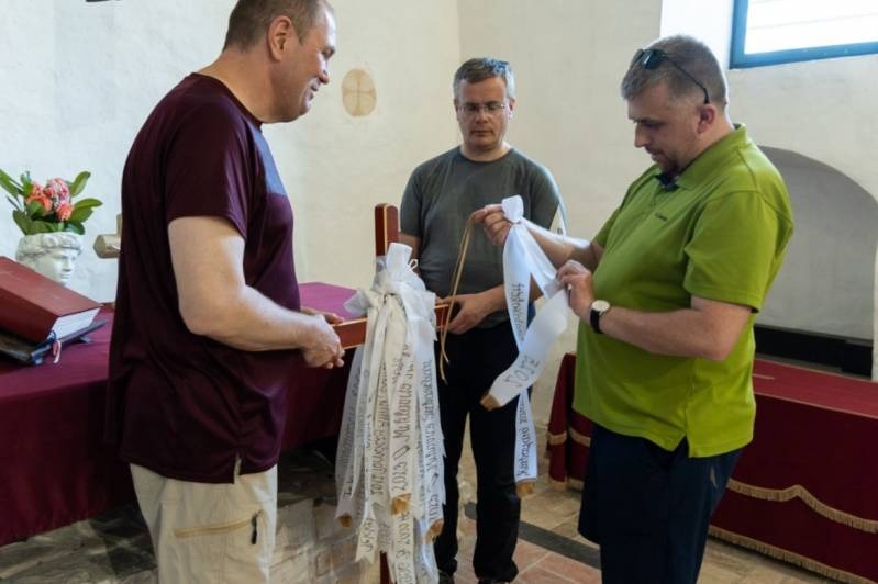 A mecseknádasdi Árpád-kori Szent István-kápolnában a zarándoklat egyik szép mozzanata, amikor az indulás előtt szalagot kötnek a zarándoklat keresztjére, rajta a leendő szentelés előtt álló papnövendékek nevével. Idén Szanyi Norbert, a Pécsi Egyházmegye harmadéves papnövendéke kötözte fel saját szalagját. Majd Rékavár érintésével nekivágnak a Püspökszentlászlóra vezető 14 km hosszú útnak, ahonnan a legkitartóbb zarándokok Pécs felé indulnak tovább, hogy további 24 km megtételével, egész éjszakás gyaloglás után megérkezzenek a papszentelések állandó helyszínére, a pécsi székesegyházba.