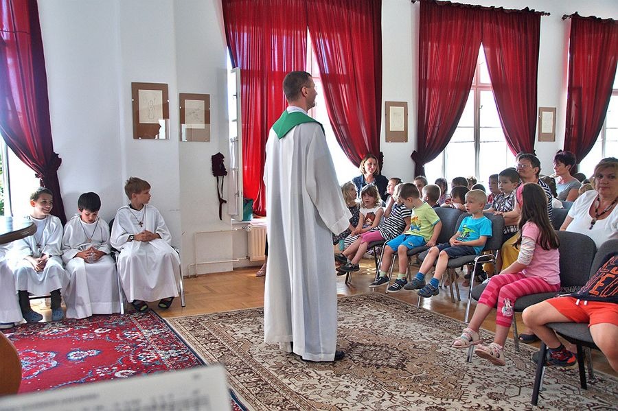 A szentmisét Nagy Norbert atya mutatta be. A homíliában arról beszélgetett a gyerekekkel, hogyan teljesíthetik Jézus kérését, amit az evangéliumban hallottak: megtartani és beteljesíteni a törvényt (Vö. Mt 5, 17-19 ), hogyan lehetnek a „föld sójává”, hogyan tehetik „finomabbá-ízesebbé” társaik és családjuk életét.