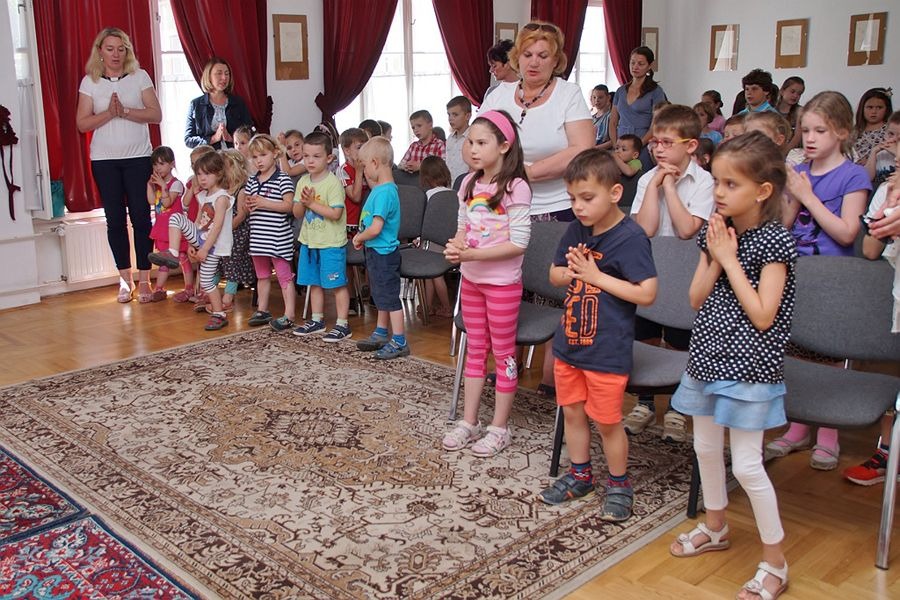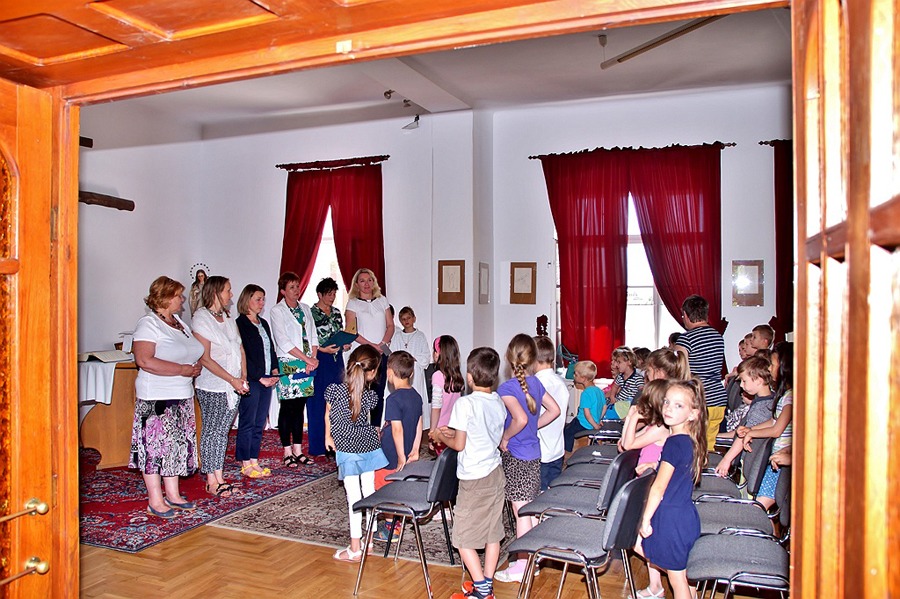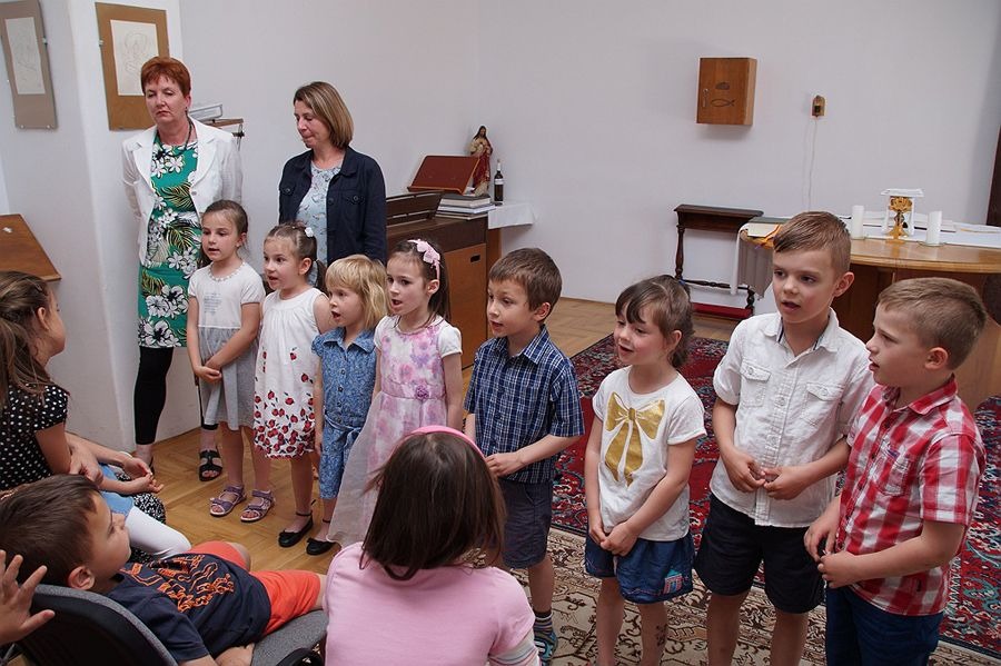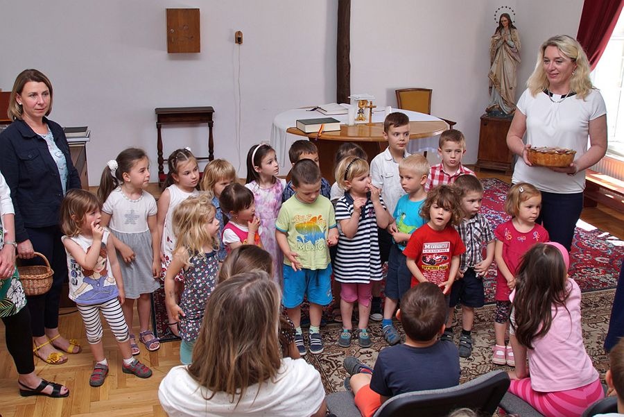 A szentmise elbocsátó áldása után a kis- és középső csoportosok énekkel, verssel és apró ajándékokkal búcsúztak nagycsoportos társaiktól. Az Úrnak mondott hálaadás után a vezető óvónő személyre szóló ajándékokkal köszönte meg Nagy Norbert atyának és minden munkatársának a szolgálatot.