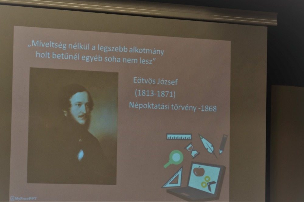 A rövid gazdasági tájékoztató után Tóth László Ákos felkérte Fükéné Walter Máriát, hogy az intézményvezetői továbbképzés keretében tartsa meg előadását először a „Tehetségfejlesztés, a lehetőségek biztosításáról”. A prezentációt a tehetség megismerésével, tanulásáról, lehetőségekről, megközelítéséről és az elköteleződésével kezdte. Bemutatta a tanítási-tanulási folyamatok jellemzőit a 21. században. Hangsúlyozta, hogy a neveléstan a testi és szellemi nevelés részletes kifejtését adja, feltárja a nevelés működését, melynek célja a növendékek természetes tehetségének megtartása, kibontása és fejlesztése. Vázolta a képesség, tehetség lehetőségeit. Elmondta, mire lehet szükségünk a tehetségfejlesztéshez.