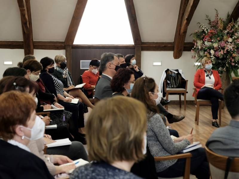 A május 17-én szervezett esemény alkalmával a Magtár konferenciatermében találkoztak az intézményvezetők, akik a Pécsi Egyházmegye által működtetett közoktatási intézményeket koordinálják. A megjelenteket Tóth László Ákos közoktatási főmunkatárs köszöntötte, aki közös imádsággal kezdte meg az értekezletet, majd üdvözölte az új gazdasági igazgatót. Murber Zoltán röviden bemutatkozott az intézményvezetőknek és átadta a szót az intézménygazdálkodásért felelős főmunkatársnak. Gaálné Stettner Beáta ismertette a közoktatási intézmények 2021. évi költségvetését, ezen belül a bevételi forrásokat, valamint a kiadási tételeket. Vázolta a jelenlegi pénzügyi helyzetet, valamint kérte a belső pályázatok beadását.