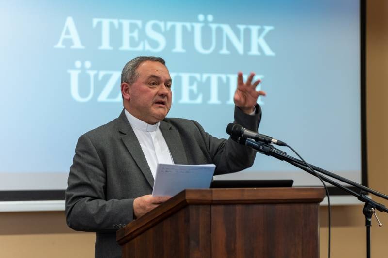 Felföldi püspök beszélt a test teológiájáról, azaz mindarról, amit a teremtmény teste mond el a Teremtőjéről, Istenről. Kiemelte, az emberi test csak a lélektől válik igazán emberré; amikor a lélek kap hangsúlyt, már nincs szerepe a test vélt vagy valós tökéletlenségének.