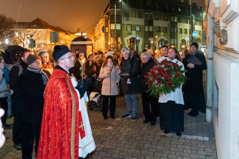A vértanú ereklyéjét kísérve megkoszorúzták Boldog Brenner János egykori pécsi lakóházát