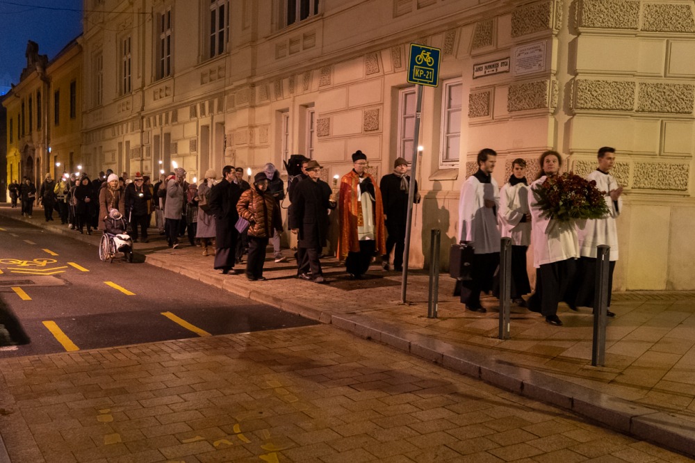 A menet résztvevői végighaladtak azon az útszakaszon is, melyet Brenner János elemi iskolásként, majd később a Ciszterci Gimnázium diákjaként is feltehetően nap mint nap megtett.