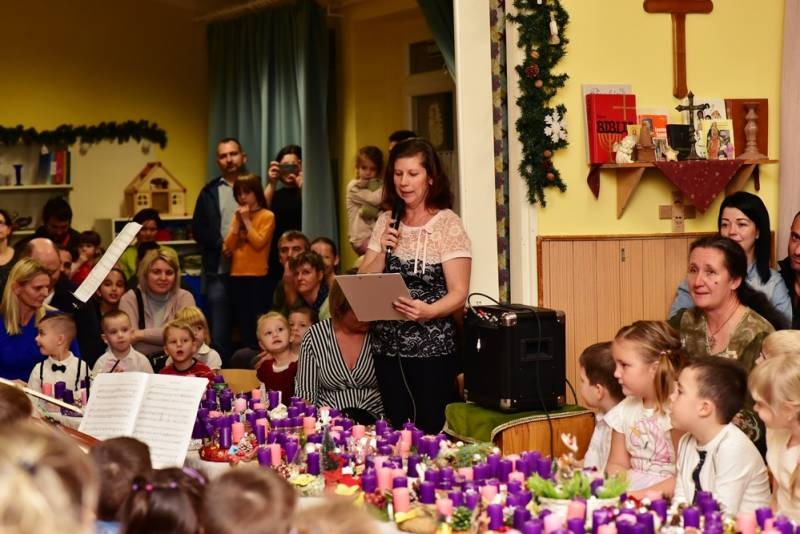 Az ünnepség fénypontjaként Molnár Erik atya, a Szekszárd Belvárosi Plébánia káplánja megádotta az házilag elkészített adventi koszorúkat és meggyújtotta az óvoda gyertyáján az első gyertyát. A szülők és gyermekek megáldott koszorúikon túl a karácsony békéjével, Jézus születésének örömével gazdagodva térhettek haza otthonaikba.