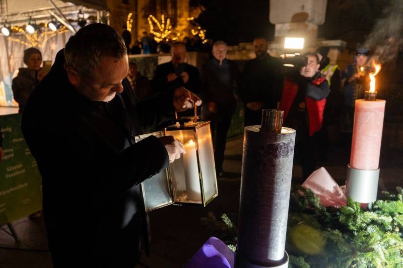 Advent 4. vasárnapjának előestéjén, december 21-én Felföldi László pécsi megyéspüspök a betlehemi lánggal gyújtotta meg Pécs város adventi koszorúján a negyedik, a szeretetet jelképező gyertyát.