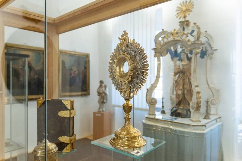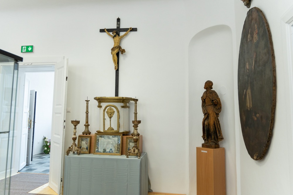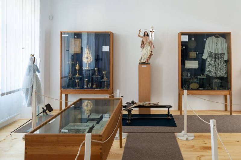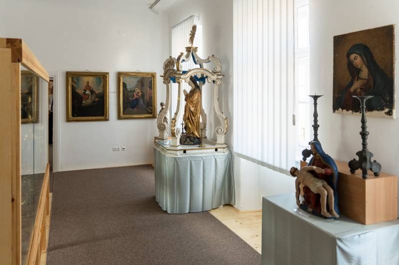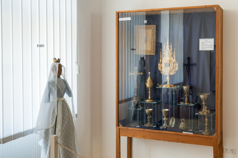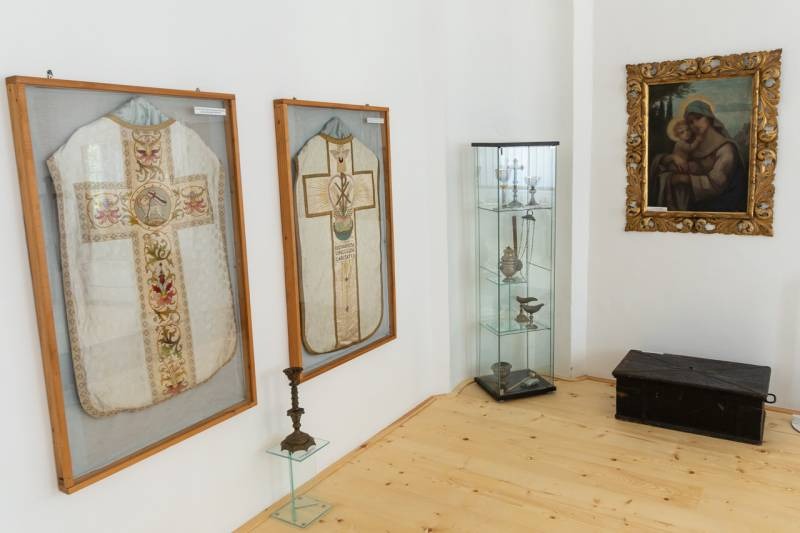 A négy gondosan berendezett teremben található gyűjtemény egyik termében textíliák, miseruhák és zászlók találhatók, a másikban 18. századból származó ötvöstárgyak: kelyhek, paténák, mostranciák, üveg kancsók, továbbá az ostyasütés eszközei, a harmadikban pedig egy kápolna berendezési tárgyai, betlehemi és szent sír szobrok, valamint a schwarzwaldi Mária-szobor látható. A negyedik helyiségben Bátaszék nemzetközi hírű tudósa, az 1895-ben született dr. Hermann Egyed római katolikus pap, premontrei kanonok, történész, levéltáros, egyetemi tanár, rektor dolgozószobáját rekonstruálták.