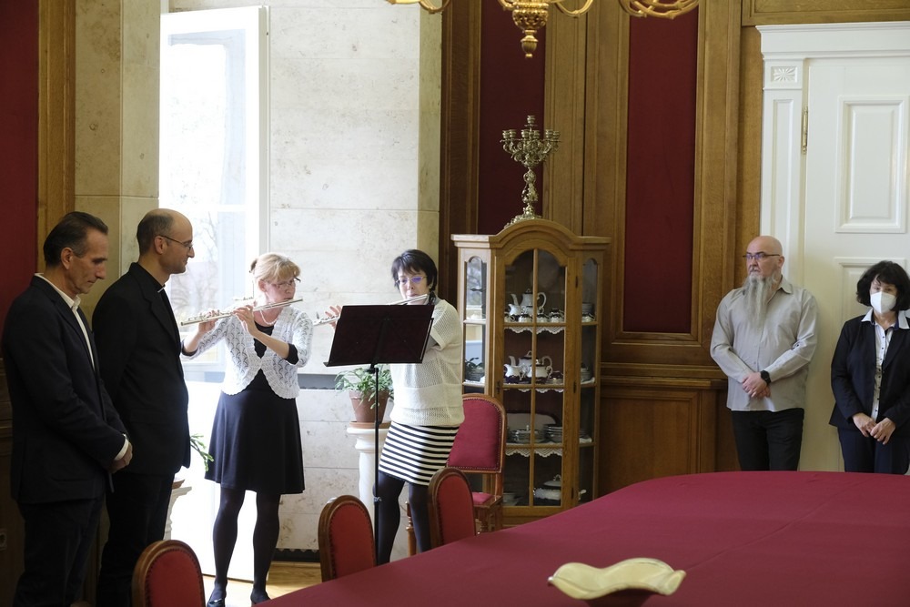 Az átadó ünnepséget a Szent Mór Iskolaközpont két zenetanárnőjének koncertje nyitotta meg, melyet követően Tóth László Ákos, az Egyházmegye közoktatási főmunkatársa köszöntette a jelenlévőket, és elmondta, milyen kiemelten fontos a jövő generációjának hozzáértő nevelése.