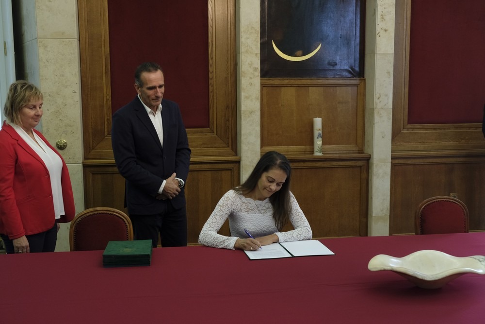 A továbbiakban Gerner Zsuzsa, a Pécsi Tudományegyetem Tanárképző Központjának Főigazgatóasszonya beszélt a pedagógus utánpótlás nehézségeiről, és sok sikert kívánt a jövő generációjának neveléséhez.