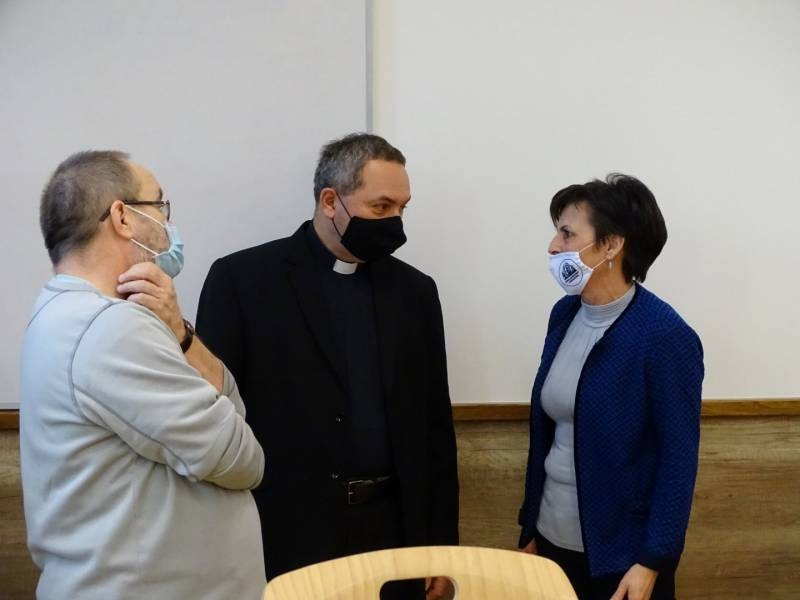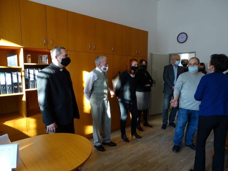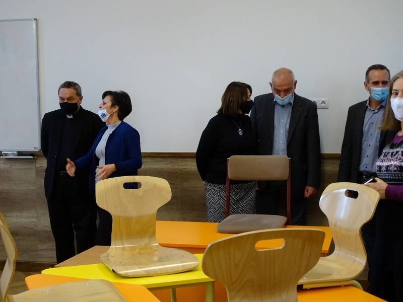Az ezt megelőző napon január 7-én, a kivitelező és a fenntartó részére szervezett iskolabejáráson nagy örömünkre részt vett Felföldi László egyházmegyénk püspöke is, aki beiktatását követő napon látogatott el iskolánkba.