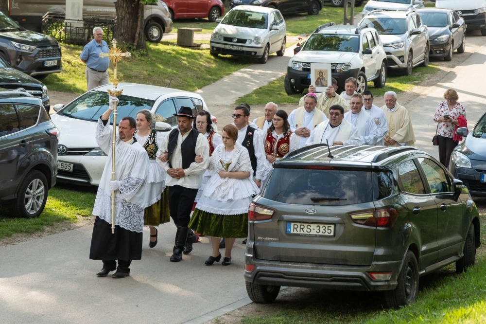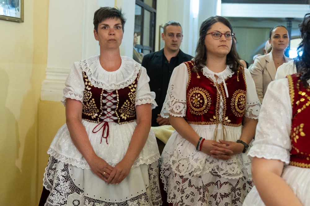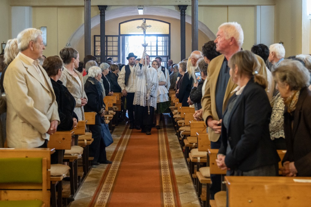 A liturgia zárásában Kamerer Aleksandar atya hálatelt szívvel mondott köszönetet a jelen levő papságnak és a híveknek a befogadásért, majd Felföldi László megyéspüspök és Mayer Mihály nyugalmazott püspök személyes jókívánságait követően ezüstmisés áldással ért véget a liturgia Szakcs 1720 körül épült templomában.