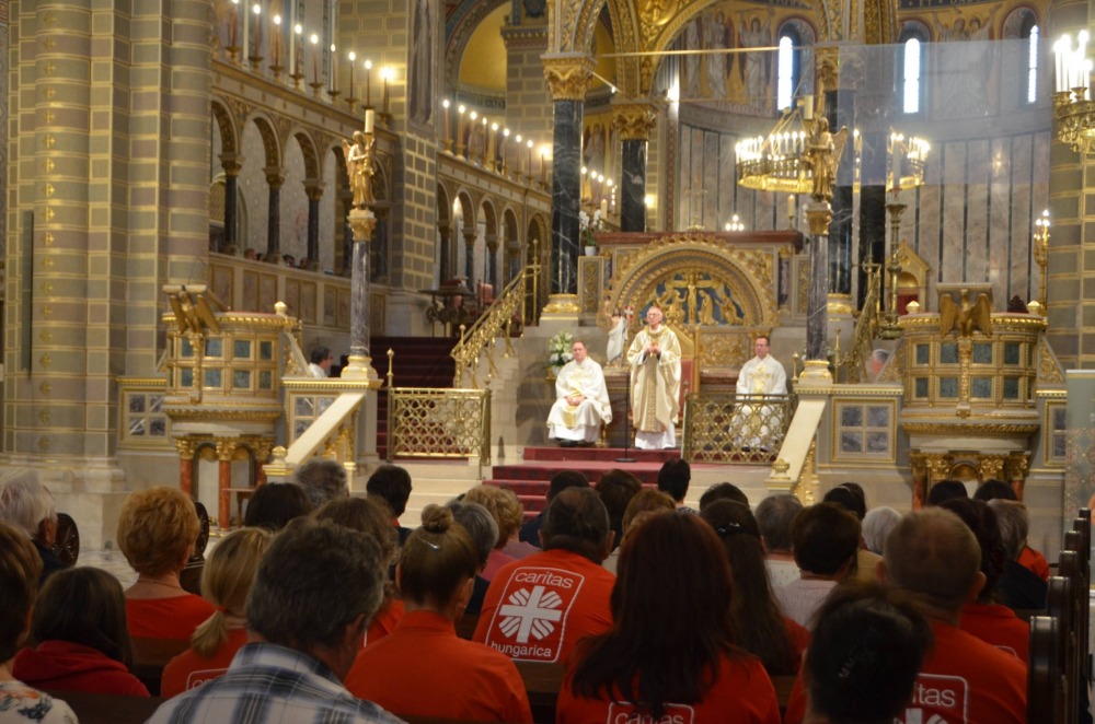 Megdöbbentőnek nevezte azt a szeretetáradatot, ami az elmúlt hónapokban kamionszámra áramlik a több mint félmillió menekült részére, és megy tovább a front felé a sok-sok munkatárson keresztül, hogy tényleg azokat segítse meg, akik nagyon nagy bajban vannak, és azok is megtapasztalják a szeretetet, akik valamilyen oknál fogva neheztelnek a magyarokra. Mi hisszük azt – emelte ki – hogy az Isten a szeretet, és a rosszat csak a jóval lehet legyőzni. Ti mindnyájan ennek vagytok a kiválasztottjai és ezt köszönjétek meg az Úristennek. Ti Istennek vagytok a szolgái. Nem úgy, mint a klerikusok, de mégis a legfontosabbat, a lényeget ti mutatjátok meg, amelyek bizonyítékai mindannak, amiről mi, papok, beszélünk.