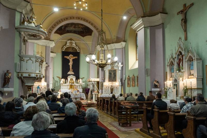 A nagycsütörtöki események sorában beszélt a püspök a lábmosás szertartásáról, emlékezve arra, hogy az utolsó vacsora előtt Jézus megmosta az apostolok lábát. Meleg volt az idő, forróság volt, poros volt az út, az út porának lemosása szolgai feladat volt. Ezen az estén Jézus vállalta ezt a feladatot, mert egységet, közösséget akart, melynek tagjai egymást szolgáló szeretettel vannak egymás iránt. Ezt a szolgáló szeretetet veszítettük el a családokban, az élet közösségeiben, pedig ettől gazdag és éltető a közösségünk a szeretetünk.
