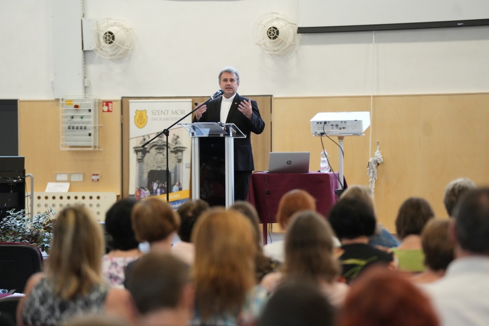 A díjátadót követően Dr. Papp Miklós morálteológus tartott humoros anekdotákkal tűzdelt előadást „,A pedagógus mint próféta” címmel. Az egyházmegyei pedagógusnap agapéval zárult a Magtár Látogatóközpontban.