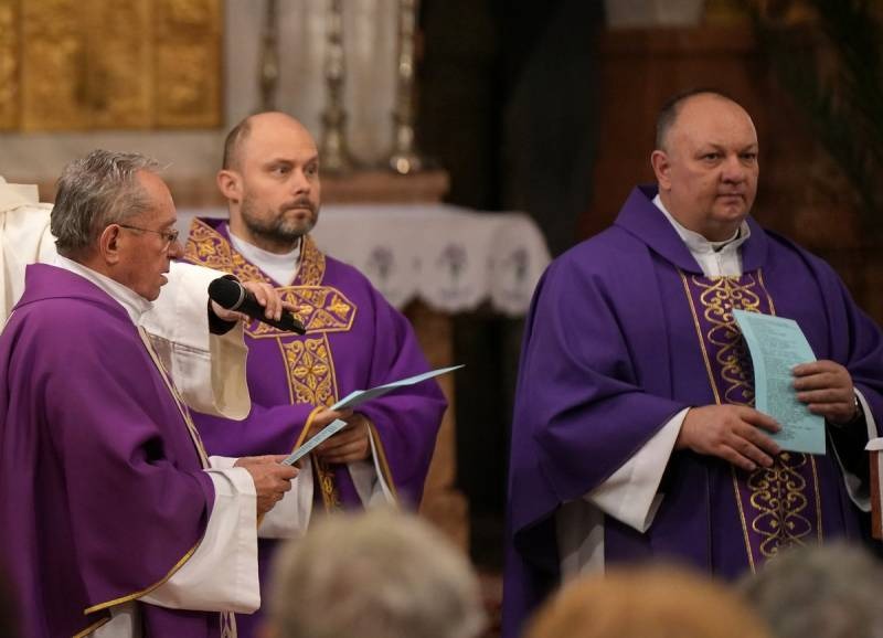 A szentmise a bűnbánat ősi szertartásával, a hamvazkodással ért véget, melyben az előző évi virágvasárnapi barkák elégetéséből keletkezett hamuval a celebráló papok keresztet rajzoltak a hívők homlokára, emlékeztetve őket mulandóságukra, miközben ezeket a szavakat mondták: „Emlékezzél, ember, hogy porból vagy és porrá leszel!”