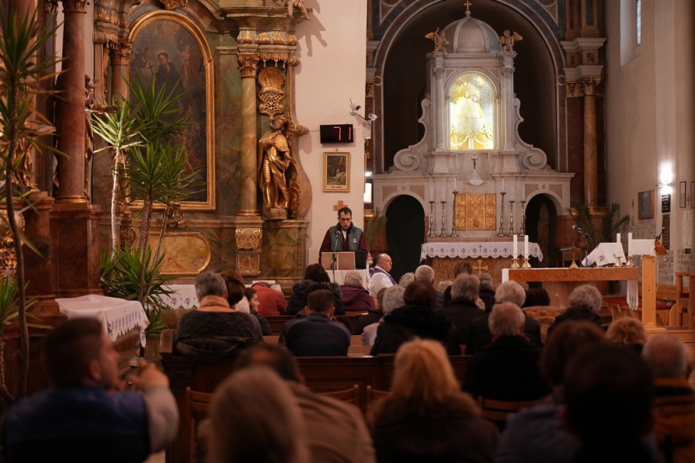 Ronta László harkányi plébános a nagyböjt kihívásairól osztotta meg gondolatait. Beszédében rámutatott, Isten minden embert egyformán szeret, nem válogat. Mindnyájan értelmes emberi életre vágyunk, ezért fontos megérteni, hogy Isten nélkül üressé válik az életünk. Ezért fontos látni, hogy a döntéseink Isten felé vezetnek minket vagy épp eltávolítanak tőle. A nagyböjti idő, mely a bűnbánatot, a lemondást, az erények gyakorlását jelenti, az emberi értékek megtalálására és megszerzésére biztat. A valódi böjt lemondásokkal jár. Az igazi lemondás valaminek az elhagyása, önmagunk odaajándékozása. Az önmagáról lemondani és másokért élni tudó ember hasonlít a viharba került hajóshoz, aki a felesleges dolgokat kidobálja a hajóból, hogy bizton partot érjen. Így kellene nekünk is tennünk a bűneinkkel, rossz szokásainkkal, melyek eltérítenek minket Istentől.
