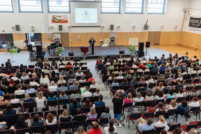 Felhívta a figyelmet életünk derűje megtalálásának fontosságára. Mint fogalmazott, a pihenés segít megtalálni a teremtett és sokszor zajos világ szépségében a gondoskodó teremtő Atyát és önmagunkat, hogy hivatásunkban képesek legyünk látni: jól látni egymást és a ránk bízott gyermekeket. Végezetül a főpásztor a Jóisten áldását kérte a pedagógusok szolgálatára, majd az ünnep díjátadóval folytatódott.