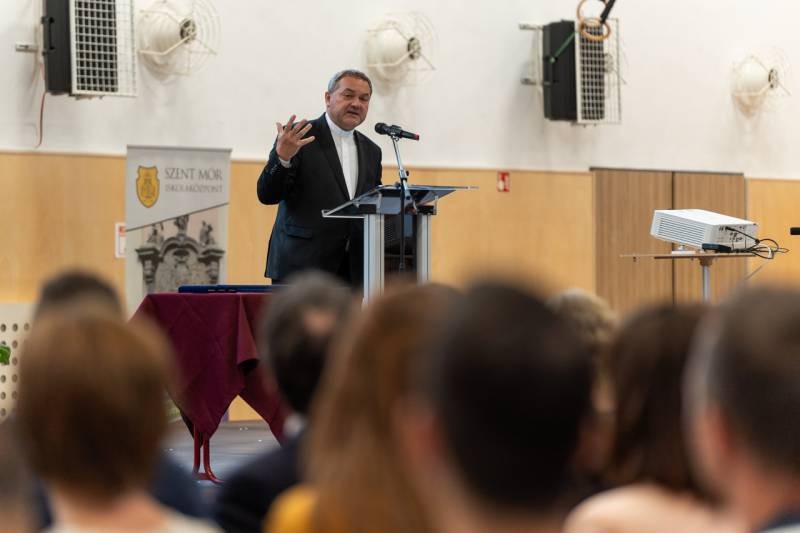 Az ünnepi alkalmon Felföldi László pécsi megyéspüspök személyesen mondott köszönetet a pedagógusoknak szolgálatuk felelősségteljes végzéséért. A főpásztor rendszeresen felkeresi az egyházmegye oktatási intézményeit, részt vesz azok kiemelt rendezvényein, jól ismeri mindennapi örömeiket és problémáikat.