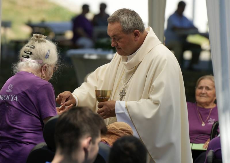 A főpásztor beszédében személyesen szólította meg a gondozottak között a legrégebben, immár 29 éve az otthonban élő, és ma is aktív Hargitai Ilonát, akinek – mint fogalmazott – az élete példa, gazdagság és erő hálaadással és reménységgel.