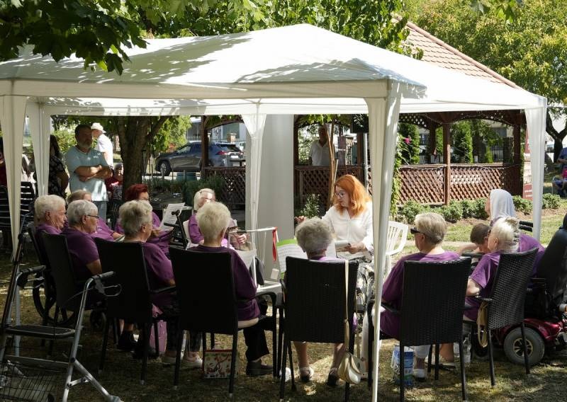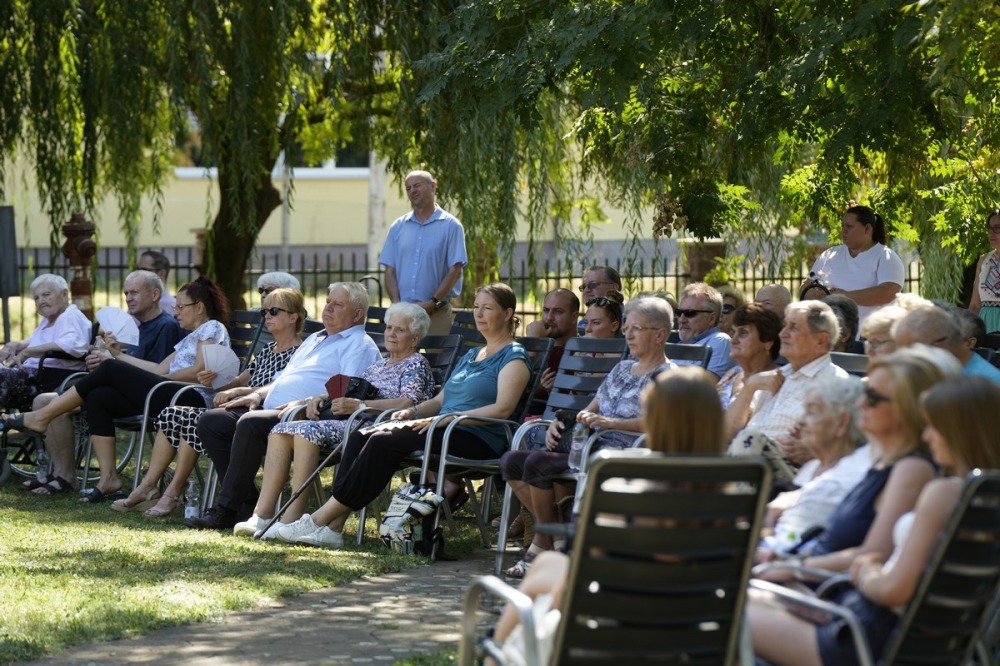 Az évfordulós ünneplés előbb az otthon lakóinak kórusa, majd pedig ebéd után stubendek Katalin és Götz Attila, a Pécsi Nemzeti Színház színművészeinek operett előadásával folytatódott.
