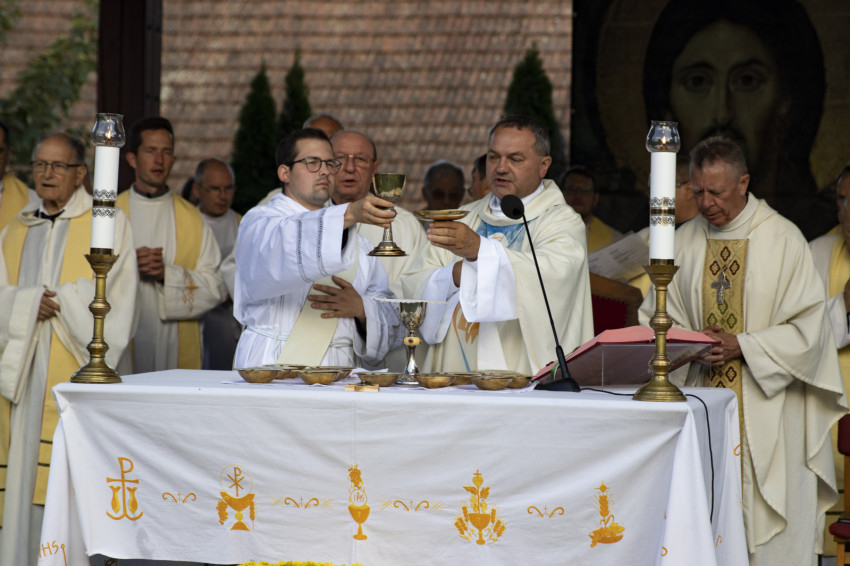 Egy találkozás, egy igen, egy közösség, amiben növekednünk kell – ebből születik meg az, amiért vagyunk és élünk, a misszió, a küldetés, a tanúságtétel, a hit túlcsordulása. Ha tudunk találkozni egymással a családi asztalnál és Isten oltáránál, akkor megértjük a közösség titkát, akkor mint tanítványok merünk és akarunk növekedni a hitben, a szeretetben és a szolgálatban, akkor lesz tanúságtételünk, és sok embert el tudunk vezetni arra a pillanatra, amikor felismeri az emberi szív legnagyobb gazdagságát, és egyszer csak megérti: Istennek fontos vagyok, pótolhatatlan és válaszolnom kell. Szólj Uram, hallja a te szolgád – zárta szentbeszédét Felföldi László pécsi megyéspüspök.