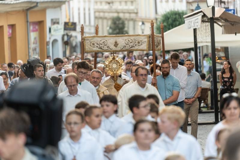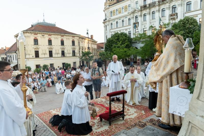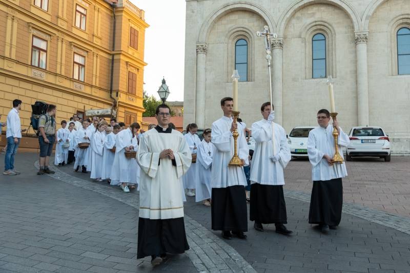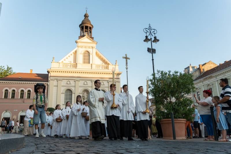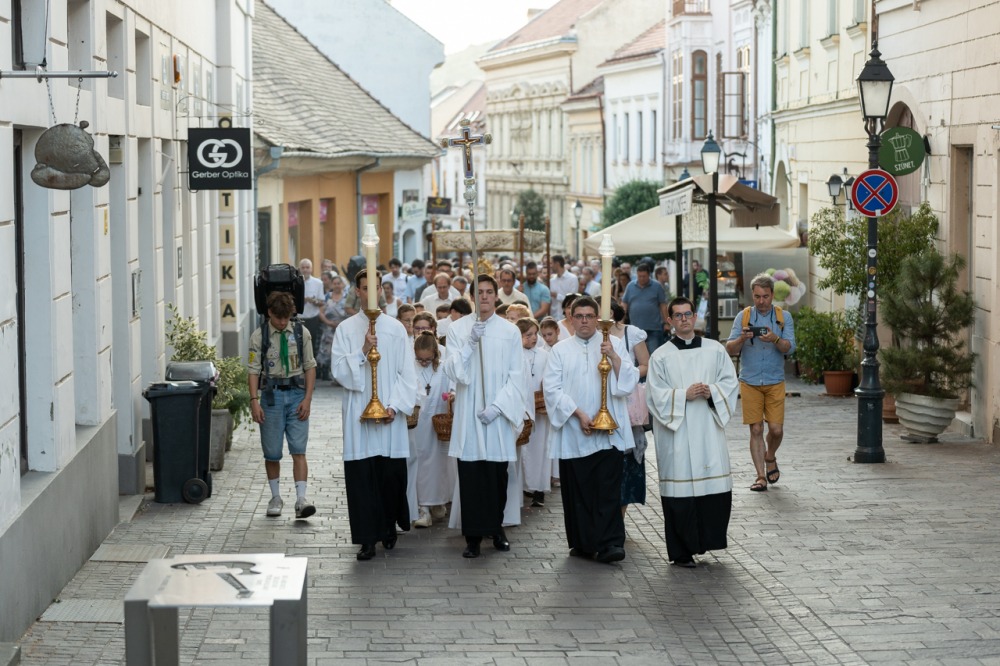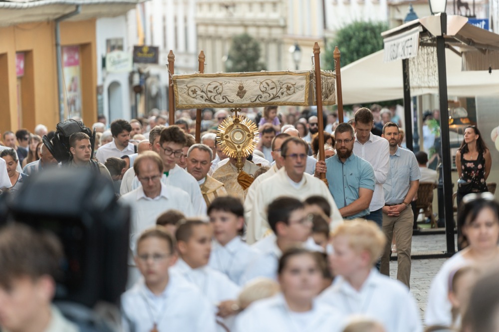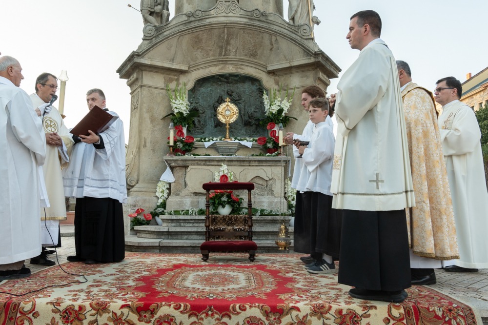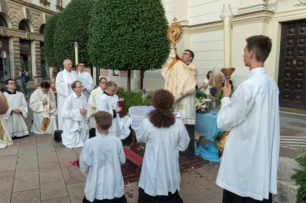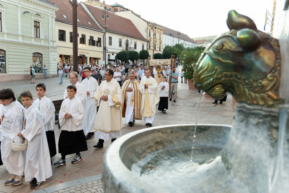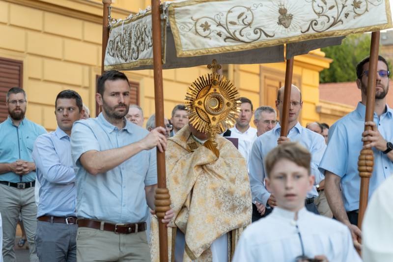 A szentmisét követően a főpásztor, a papok, a népes asszisztencia és a hívek baldachin alatt kísérték a templom falain kívülre az Oltáriszentséget, tanúságot téve hitükről a nagyvilág számára.