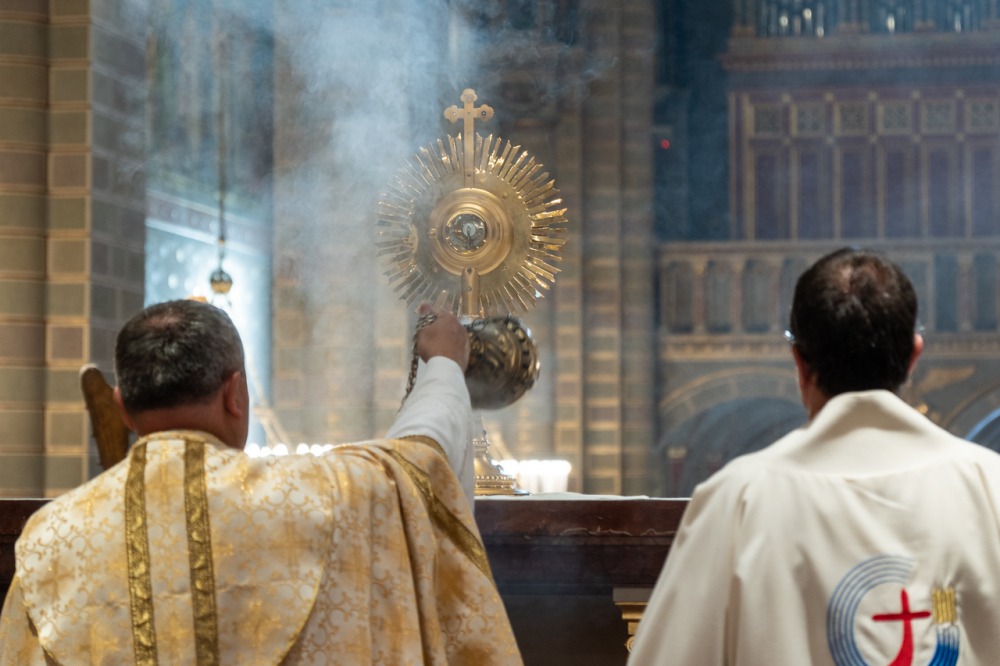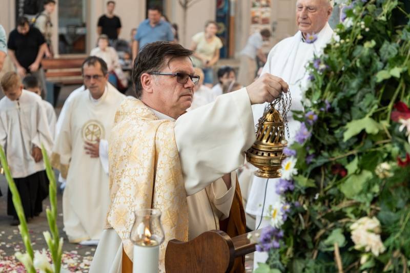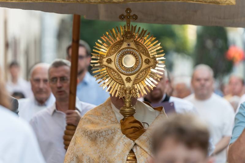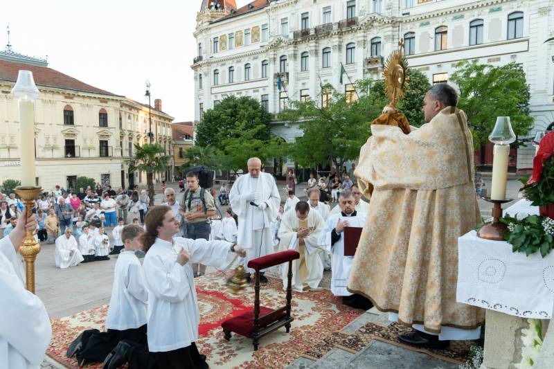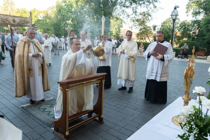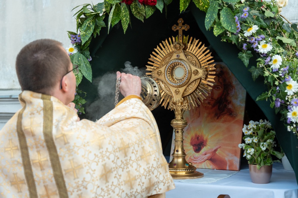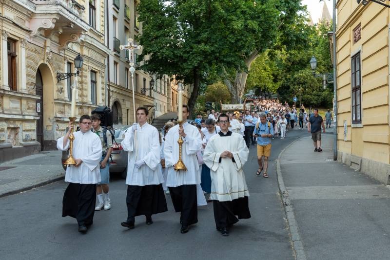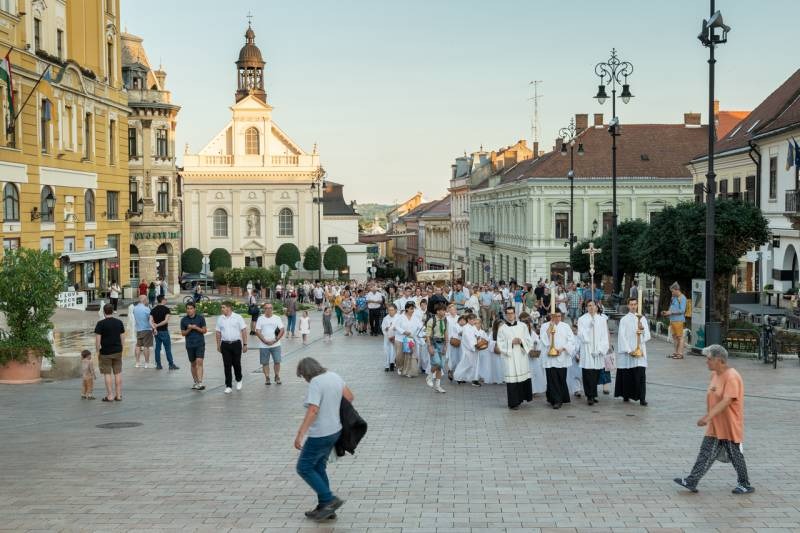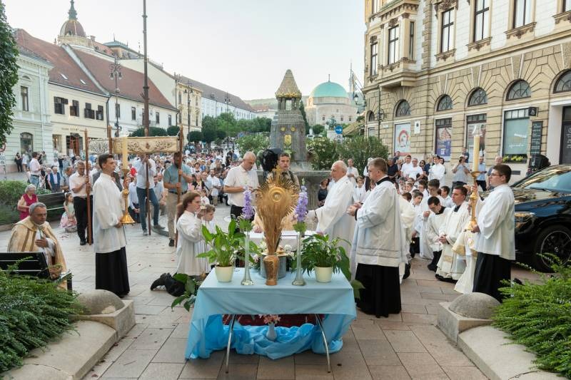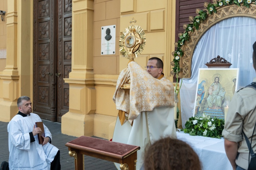 A szentmisét követően a főpásztor, a papok, a népes asszisztencia és a hívek baldachin alatt kísérték a templom falain kívülre az Oltáriszentséget, tanúságot téve hitükről a nagyvilág számára.