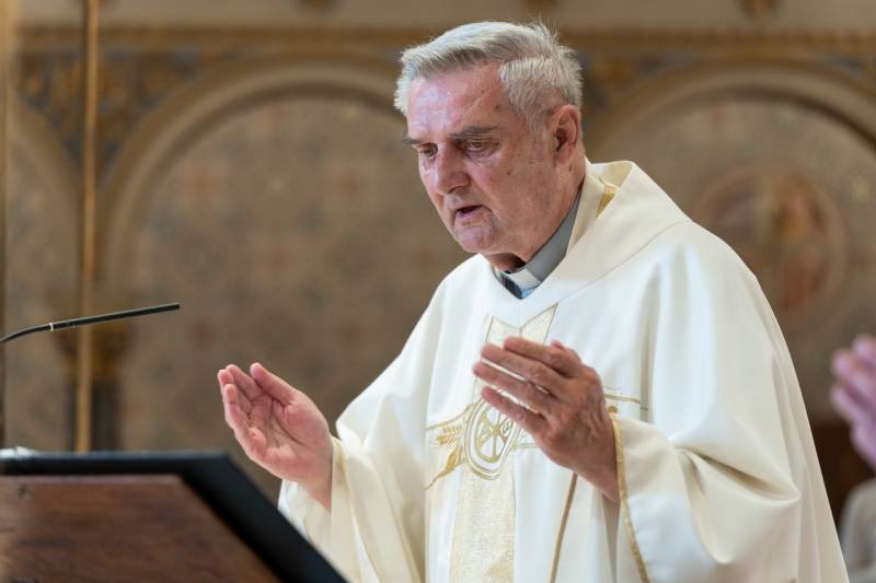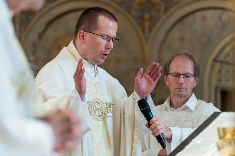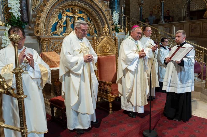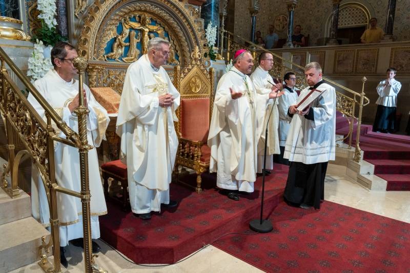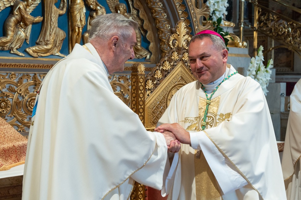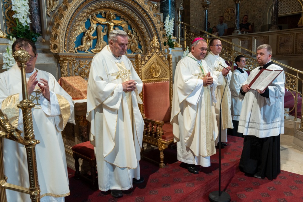 A Krisztus Szent testét és Vérét ünneplő liturgián koncelebrált Máger Róbert püspöki irodaigazgató, a székesegyház plébánosa, Molnár Erik püspöki titkár és Egri József sellyei plébános, aki ezen a napon ünnepelte pappá szentelésének 50. évfordulóját. Az aranymisés papot a főpásztor a szentmise elején külön köszöntötte.