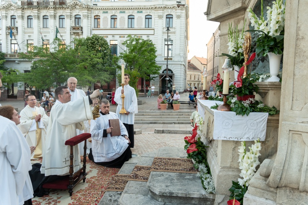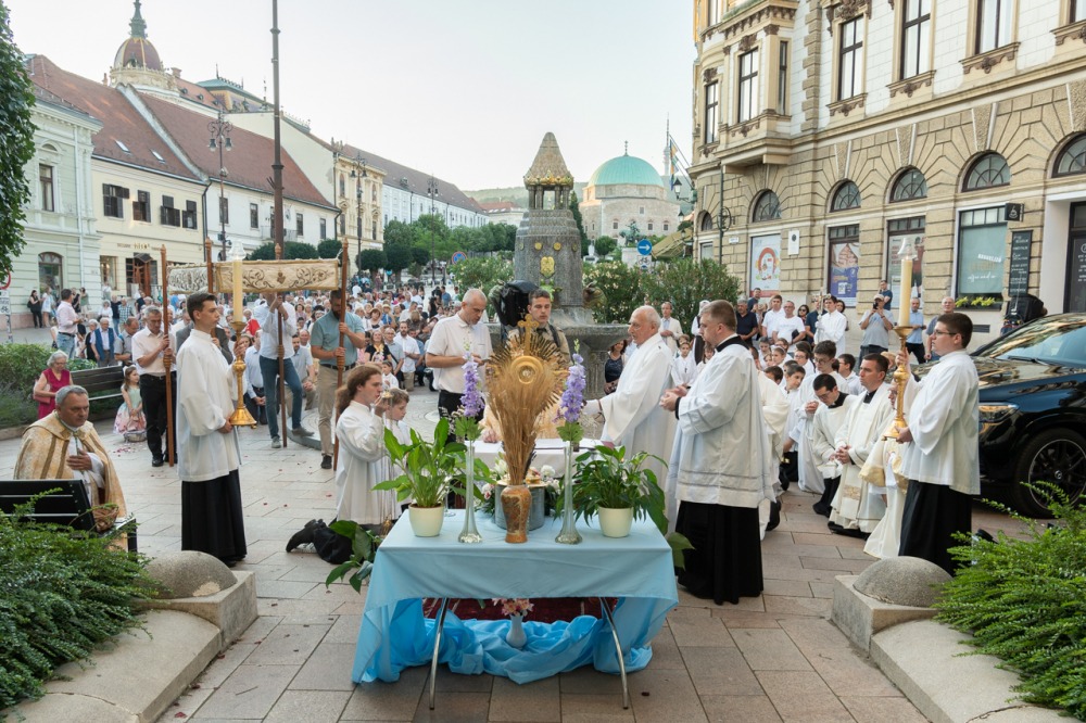 Úrnapja estéjén, június 22-én Felföldi László megyéspüspök celebrált ünnepi szentmisét a pécsi Szent Péter- és Szent Pál-székesegyházban, majd a papság és a hívek körmenetben kísérték az Oltáriszentséget a Széchenyi téri Szentháromság-szoborhoz.
