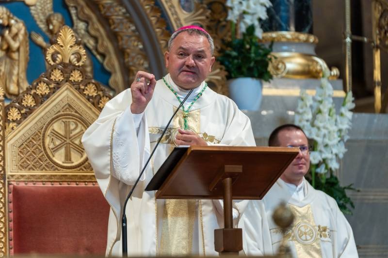 A püspök emlékeztetett, az Egyház pünkösd napján született a Szentlélek eljövetelével és a Szentlélek hatalmából folyamatosan újjászületik az Oltáriszentségben, ahol a kenyér és a bor a Megváltó szent testévé és vérévé lesz.