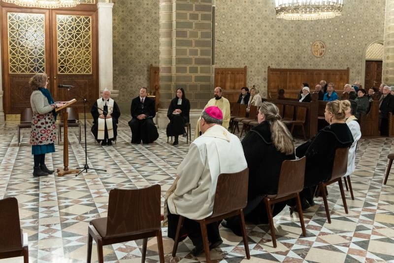 Bodnár Boglárka, a Pécsi Egyházmegye muzeológus munkatársa köszöntőjében kiemelte, az ökumenikus imahét évről évre lehetőséget ad arra, hogy kilépve a megszokott közegünkből, együtt imádkozhassunk keresztény testvéreinkkel egymás templomaiban.