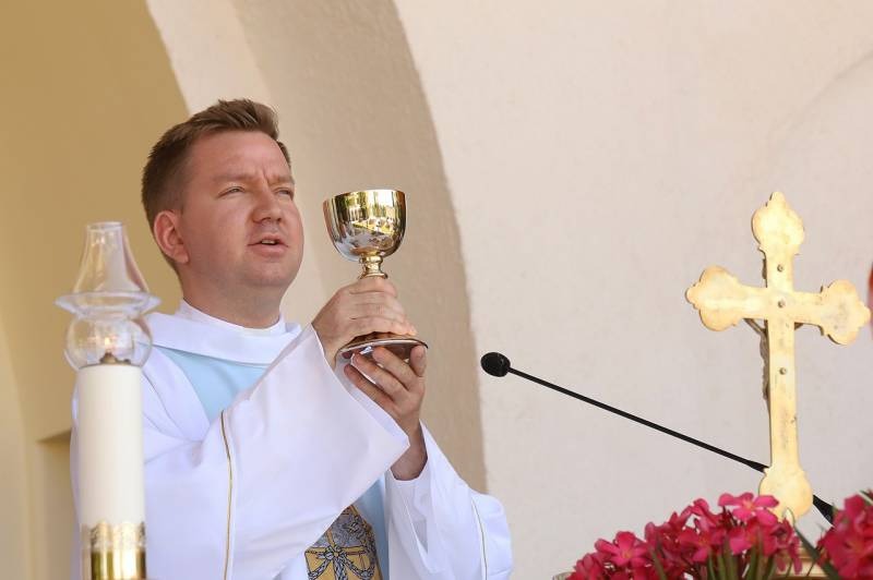 A szentmise főcelebránsa, Almási Róbert atya a homíliában arra kereste a választ, hogyan magyarázhatjuk meg azt a hitigazságot, hogy egy Isten van három személyben? „Még nem tudjuk felfogni Isten létének titkát a Szentháromságban. Isten az embert szeretetből teremtette, és ezért akarja fokozatosan kinyilatkoztatni neki önmagát. Istenünk örömteli Isten, aki megsokszorozza az életet, megteremti a szépséget és a közösséget, folyamatosan van jelen az életünkben” – hangsúlyozta a szónok.