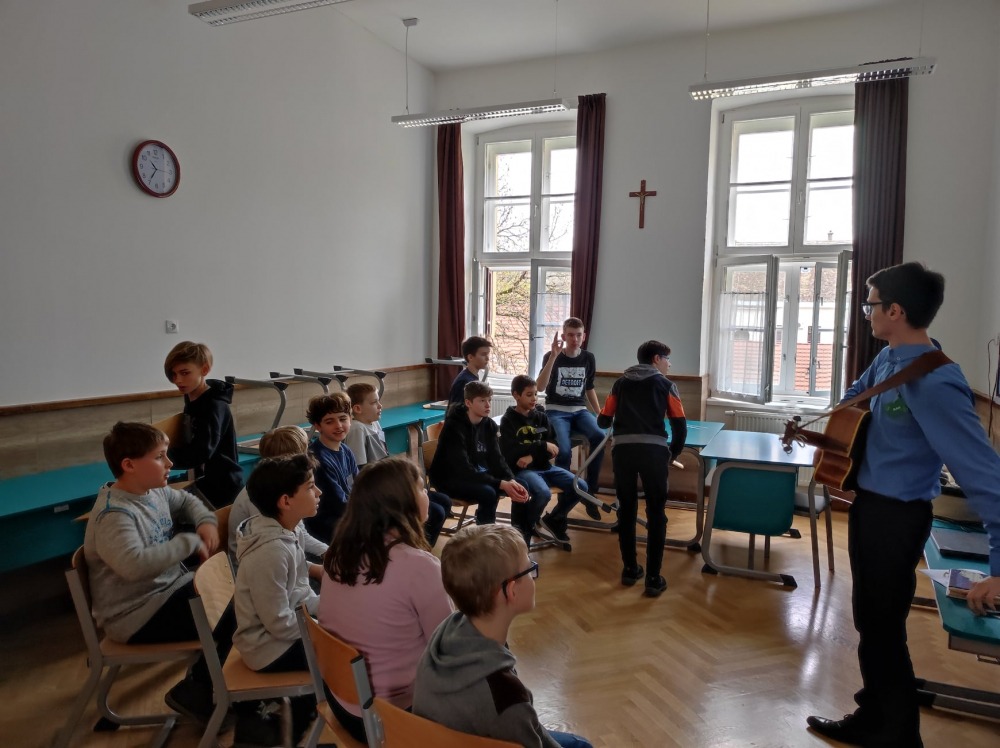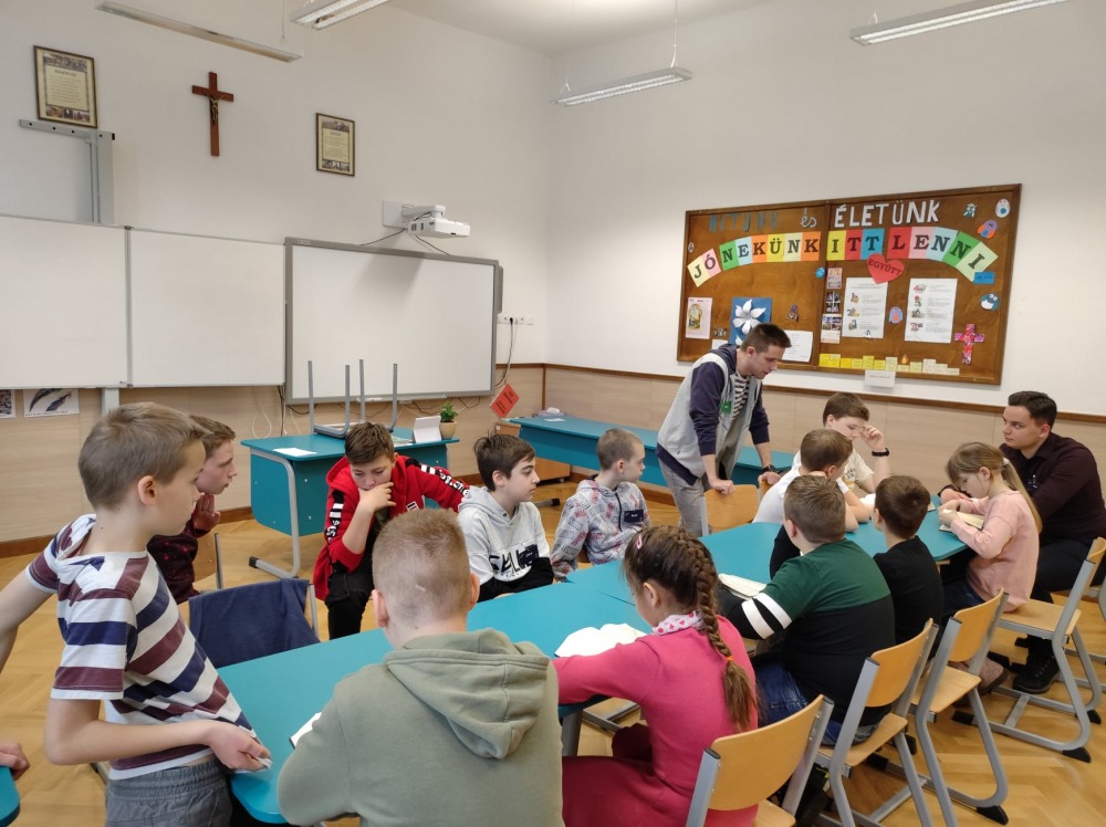 A találkozó ismerkedő, ráhangoló játékokkal kezdődött, melyben a cserkészek is – Iloskics Áron vezetésével – a segítségünkre voltak, majd a résztvevőket csoportokra osztva kezdődhetett a 6 állomásból álló feladatok megoldása. A feladatok között szerepelt a nagyböjttel kapcsolatos keresztút stációinak sorrendbe tétele, böjtöléshez kapcsolódó gyümölcsök felismerése bekötött szemmel, a húsvéti szent háromnappal kapcsolatos kérdések megválaszolása, nagyböjti szentmise részeinek a sorrendbe tétele, illetve megkeresni a Szentírásban, hogy az adott személy hogyan böjtölt. Az állomásokon a pontok mellett ún. hívószavakat is kaptak a résztvevők, melyeket a közös ebéd után bemutatott szentírási történetbe kellett belefoglalni.