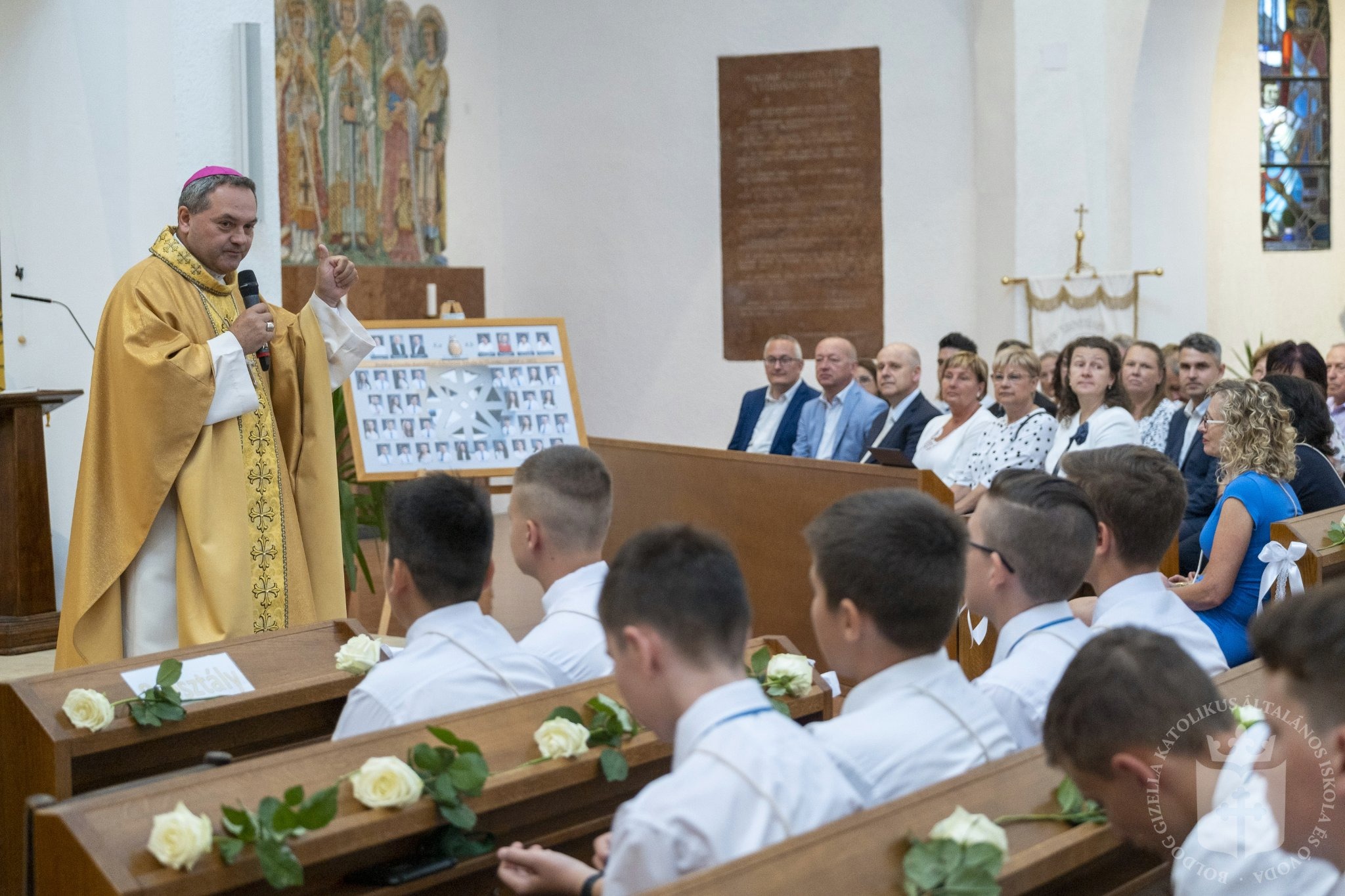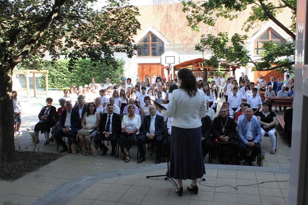A Boldog Gizella Katolikus Általános Iskola udvarán megtartott ballagási ünnepségen Felföldi László pécsi megyéspüspök köszönetet mondott mindazoknak, akik munkájának és áldozathozatalának köszönhetően megvalósult, hogy ebben a megújult térben a következő nemzedékeknek is fejlődhet és formálódhat az élete és sorsa.