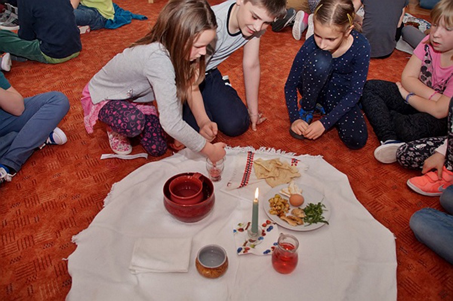 A programok között szerepelt egy különös cím is, a széder vacsora. Ez a zsidóknál a mai napig élő hagyományos ünnepi étkezés, amelyen különböző szabályok által meghatározott események és étkek szerepelnek. Ez az a bizonyos pászka ünnep, amikor a zsidók az Egyiptomból való szabadulásukra emlékeznek, és különleges, jelképes szokások keretében annak eseményeit, körülményeit is felidézik. Egy ilyen ünnepi lakomát rendeztek az apostolok, amelyet Jézussal együtt fogyasztottak el; ez volt az utolsó vacsora. Jézus ekkor a kovásztalan kenyér és a bor eredeti jelképeit magára vonatkoztatta: Ez az én testem, ez az én vérem. – így megalapítva az Oltáriszentséget, amelynek ő volt az első főpapja. A gyerekek és a tanítóik számára is különleges élmény volt a Köcsky Tiborné hittantanár által megszervezett esemény, igazi ételekkel, pontosan elmondott és eljátszott szokásokkal.