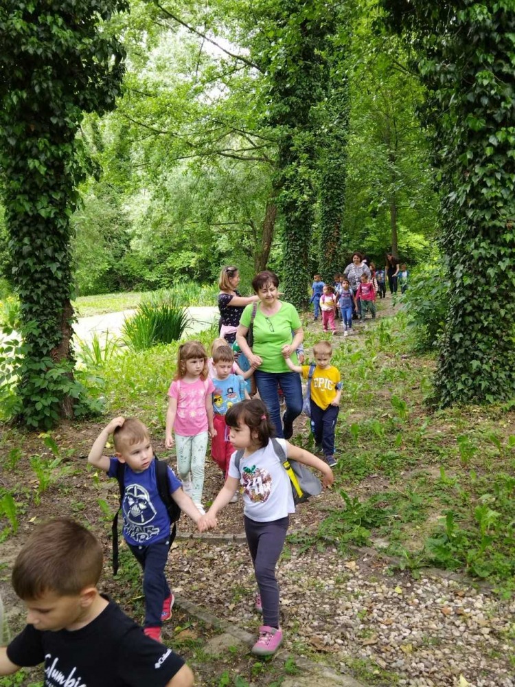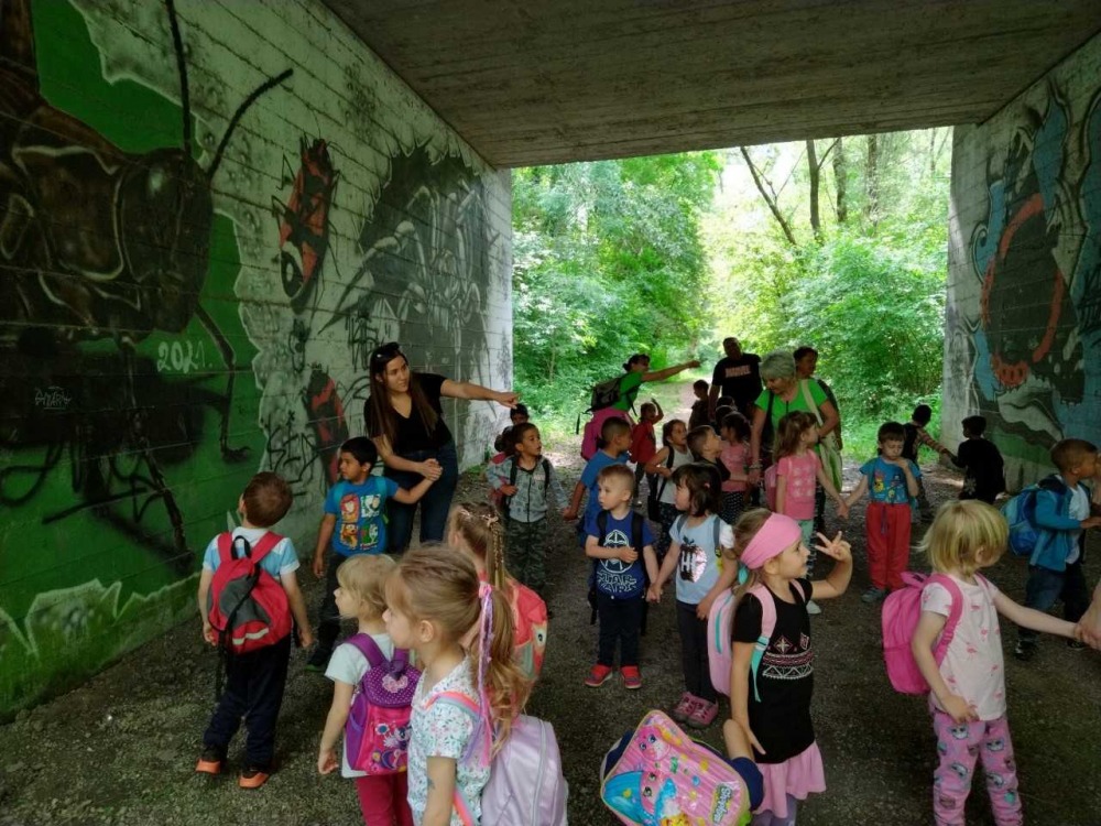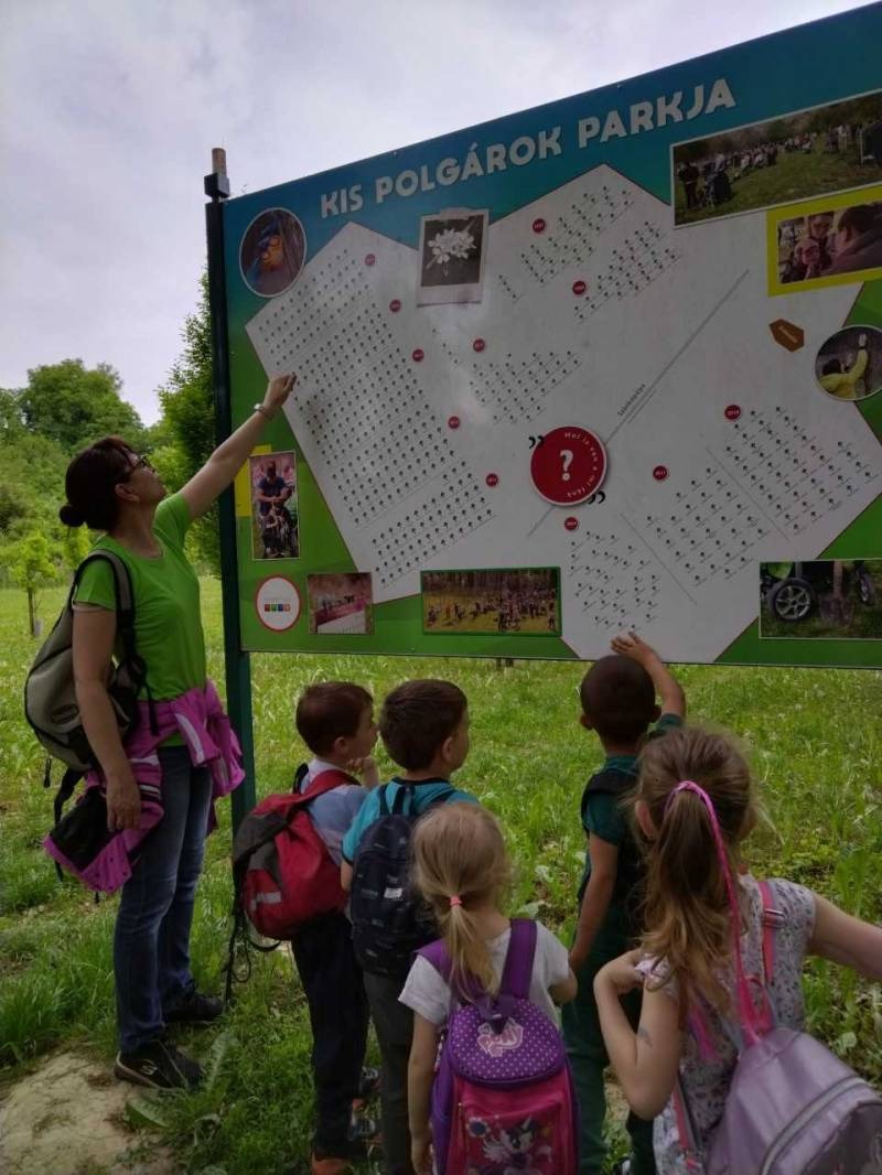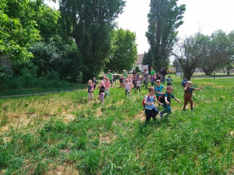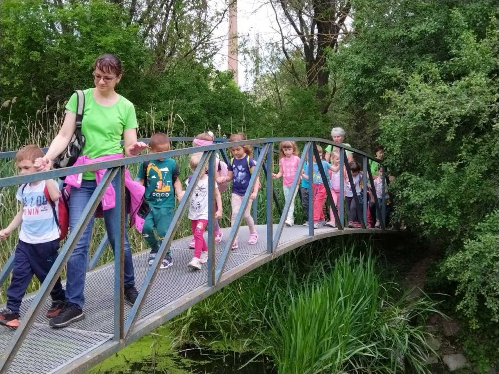 A vendéglátó Szivárvány csoport lelkesen készült a találkozóra; frissítő limonádéval és gyümölcstállal fogadta a vendégeket.A kölcsönös üdvözlést követően a program a Konda-patak völgyében folytatódott. A két csoport játékos keretben ismerkedett egymással, majd egy-egy kiválasztott gyermek elhelyezte az óvodákat jelképező zászlókat a túraútvonal kezdőpontján.