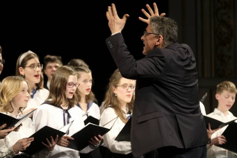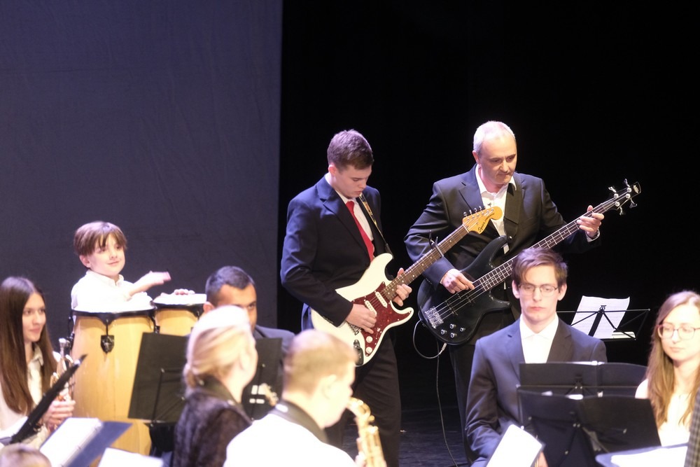 „Az Isten mindenkinek ad tehetséget, valami titkot, valami nagy ajándékot a szívébe” – kezdte köszöntjét a főpásztor. Ennek az ajándéknak a kibontakoztatásához sokat kell dolgozni. A Szent Mór Iskolaközpont művészeti napja hármas nagy ajándék ünnepe. Ünnepeljük egyfelől azt, hogy ezeknek a fiataloknak a szívében valami elkezdődött, elszánták magukat egy útra. Másfelől ünnepeljük és hálásan köszönjük a szülők hozzájárulását, ami nem csekély: fel kell ismerni a gyermek tehetségét, érdeklődését, és annak alárandelve rengeteg türelem, odafigyelés szükséges, hiszen alkalmazkodni kell a családi időbeosztással az előkészületek, próbák beosztásához. Harmadrészt pedig ünnepeljük az iskola tanárait, akik ezekenek a tehetségeknek a kibontakozását elősegítik, kísérik, mederbe terelik. Ilyen az életünk is. Talán hangszeren nem tudunk mindnyájan játszani, de a szeretet harmóniái valamennyiünket megérintik. Ebben az összhangban mindnyájan részt tudunk venni. Rajtunk múlik, hogyan fog szólni együtt az élet zenekara, a család, az iskola, a közösség közös hangszerein” – mondta ünnepi beszédében Felföldi László megyéspüspök, majd arra is felhívta a figyelmet, hogy szóljon technikailag bármilyen tökéletesen egy hangszer, ha előadójának szíve belül nincs ráhangolva a szeretet harmóniájára, akkor nem fog soha jól szólni a zenemű.