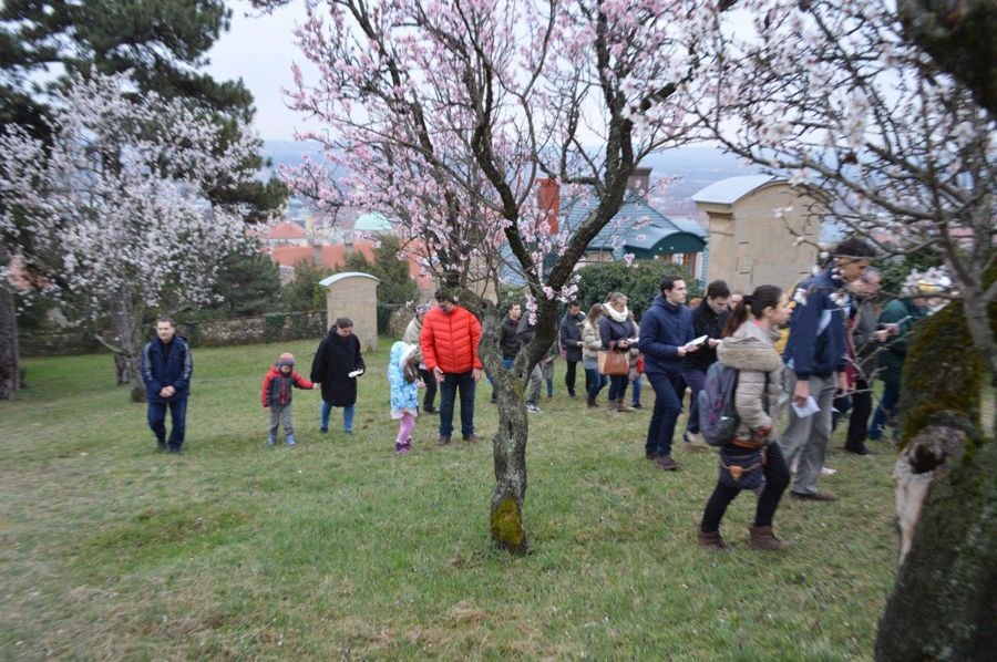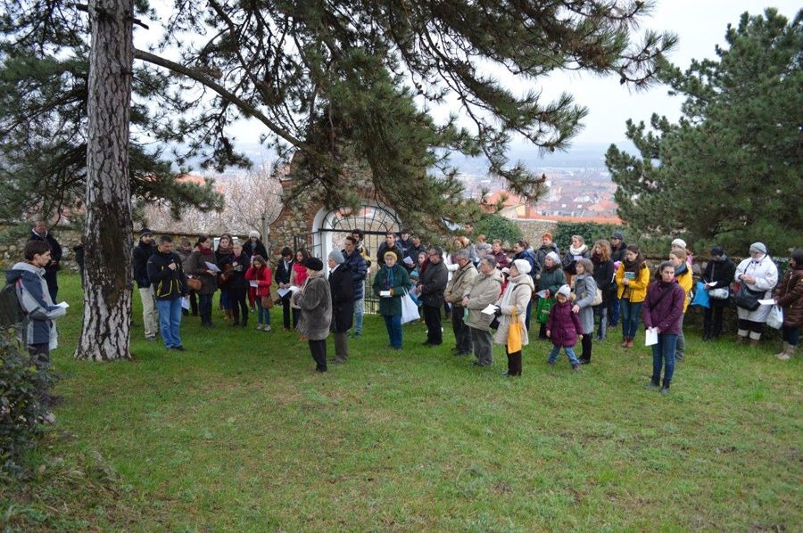 A fenti gondolatok jegyében az óvoda már az adventi időszakban is szervezett közös zenés áhítatot a családok számára. Most, a nagyböjti időben pedig közös keresztútra hívták őket. A részvételtől a hűvös, szeles idő sem riasztott vissza senkit: az óvodából együtt indultak a nevelők és a családok a közeli Kálvária-dombra.