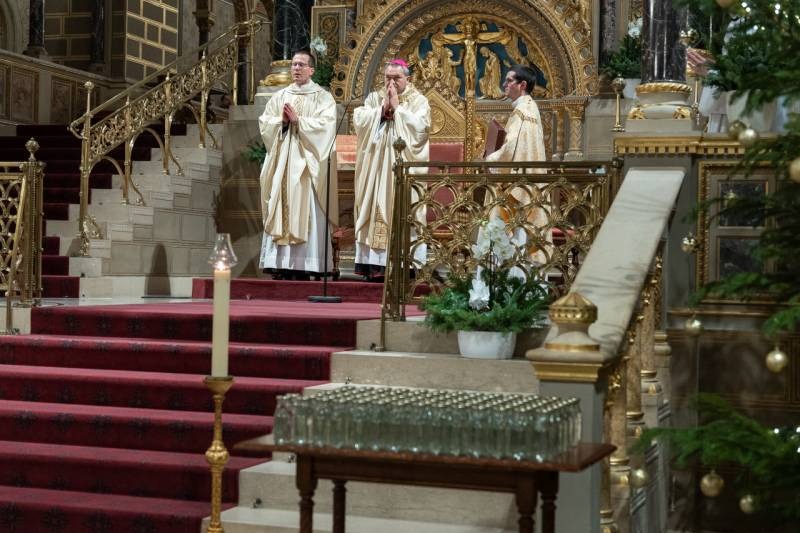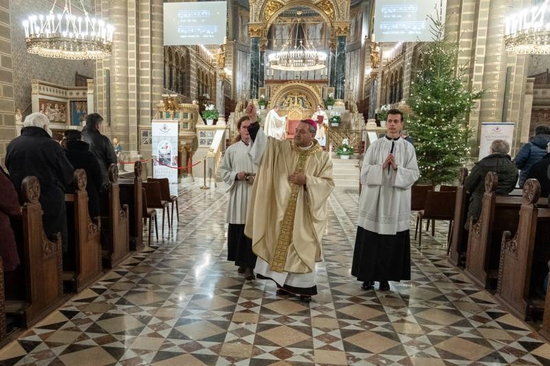A Katolikus Egyház a II. Vatikáni Zsinat rendelkezései szerint január 6-án ünnepli Urunk megjelenésének főünnepét, amikor a templomokban Jézus Jordánban való keresztségére emlékezve vízszentelést végeznek, az evangélium pedig a napkeleti bölcsek látogatását idézi fel. Vízkereszt ünnepnapján este a pécsi székesegyházban Felföldi László püspök celebrált szentmisét és végezte el a vízszentelés szertartását.