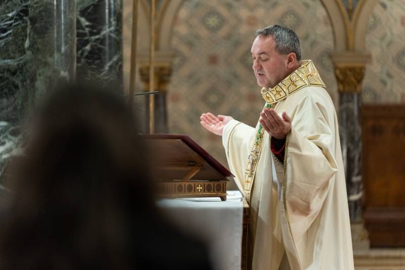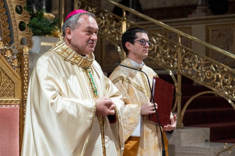 A pécsi főpásztor, aki január 6-án ünnepelte püspökké szentelésének 5. évfordulóját, a liturgia kezdetén a korábbi években vízkereszt ünnepén szentelt magyar püspököket köszöntötte: Erdő Péter bíborost, Székely János szombathelyi megyéspüspököt, az MKPK elnökét, Ternyák Csaba egri érseket, Veres András győri megyéspüspököt és Majnek Antal nyugalmazott munkácsi püspököt.
