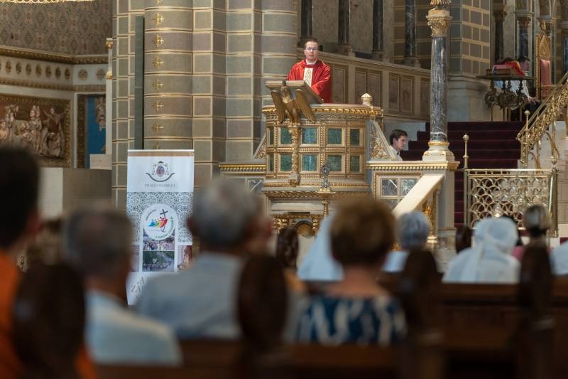 Máger Róbert, a székesegyház plébánosa szentbeszédében felidézte a néhány nappal korábbi papi zarándoklat kegyelmi adományait, melyekért a hívő ember Rómába zarándokol, felkeresi az apostolok tiszteletére felszemtelt templomokat és imádkozik a vértanú szentekhez.