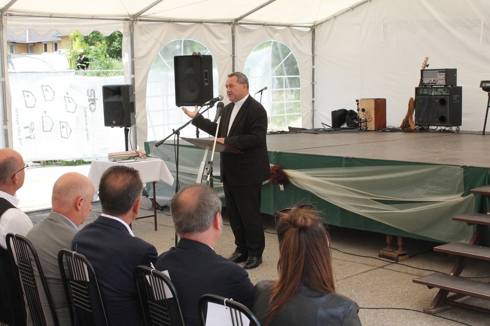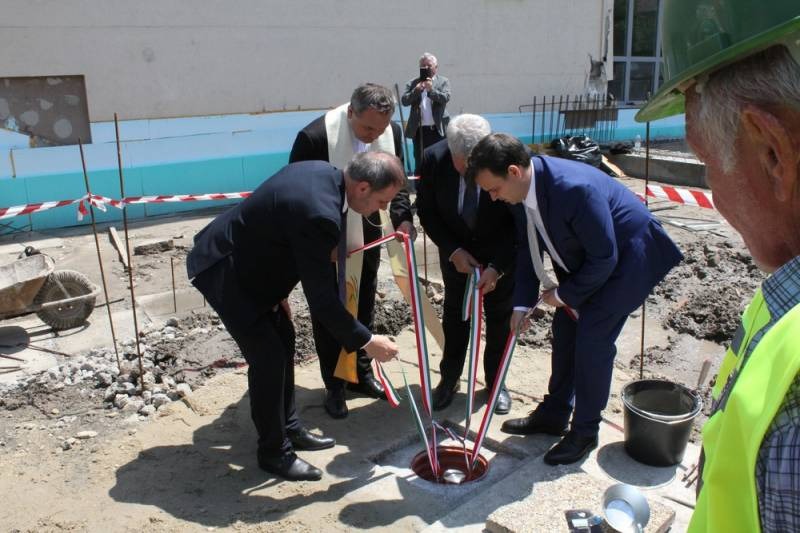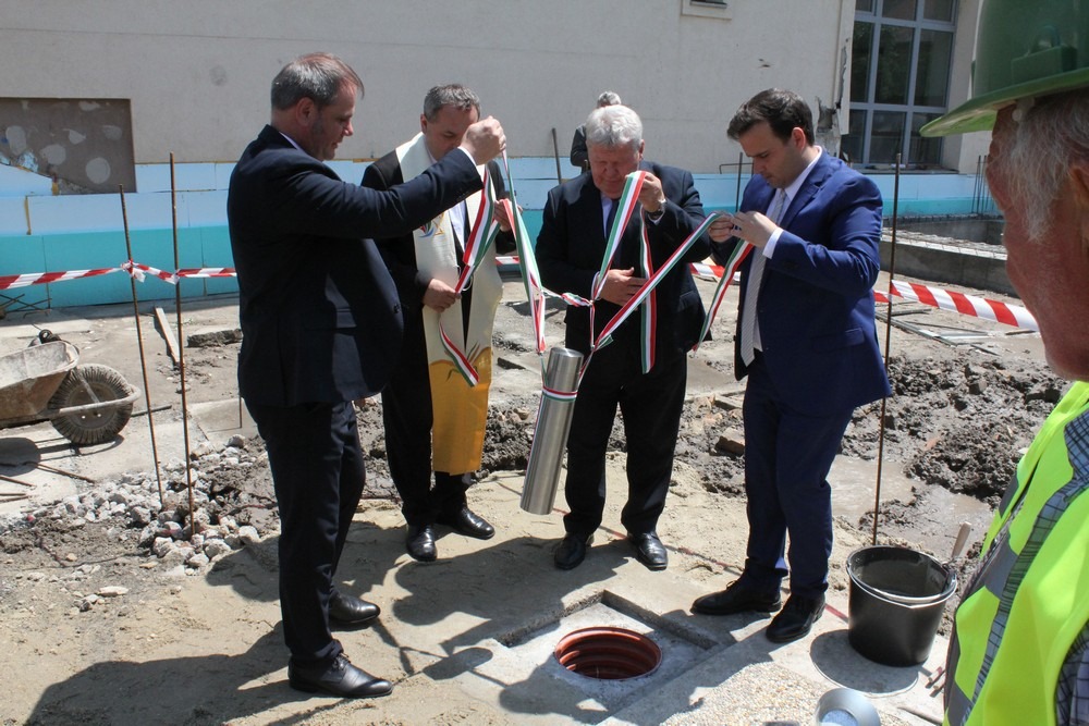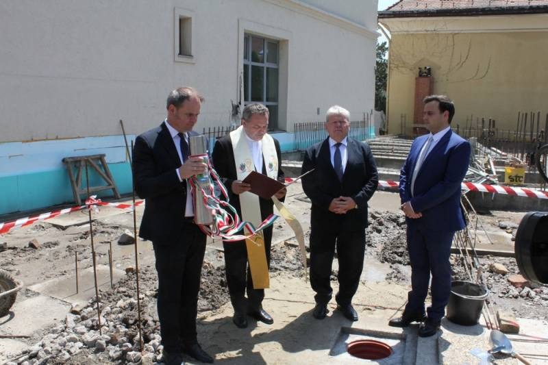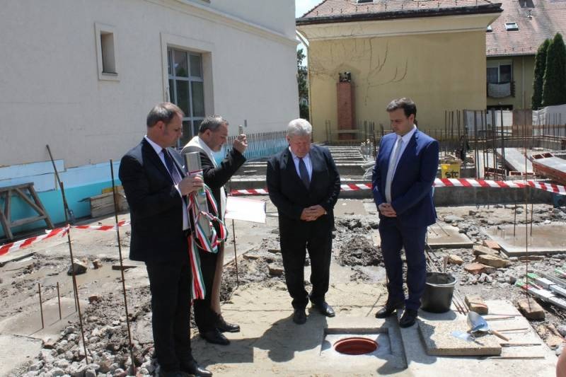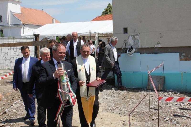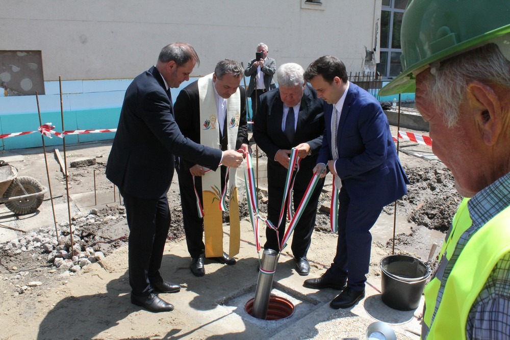 Az időkapszulát közösen leengedték az épület alapkövébe, majd Felföldi László – a déli harangszó kíséretében – megáldotta az építkezést és az abban közreműködők munkáját.