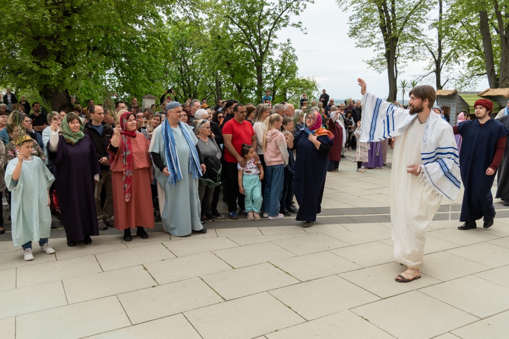 A máriagyűdi közösség 2010 óta hagyományosan minden évben virágvasárnap megjeleníti Krisztus szenvedésének történetét a kegyhelyen. Az élő szereplős misztériumjátékban a közösség tagjain kívül az idén Felföldi László pécsi megyéspüspök és Keresztes Andor, a kegytemplom plébánosa is szerepet vállalt.