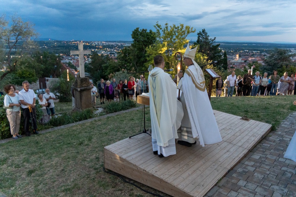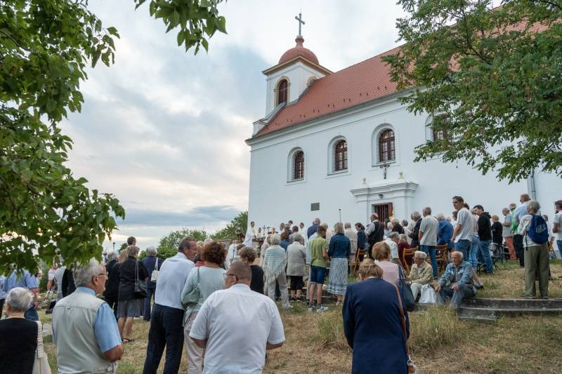 A két napon át tartó búcsúi ünnep nyitó szentmiséje után a Havas Boldogasszony-kegykép másolatával a Boldogságos Szűzanya tiszteletére körmenetben énekeltek és imádkoztak a résztvevők a Pécsi Egyházmegyéért és Egyházunkért a templom melletti Havi-hegyi sétányon.