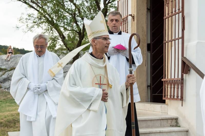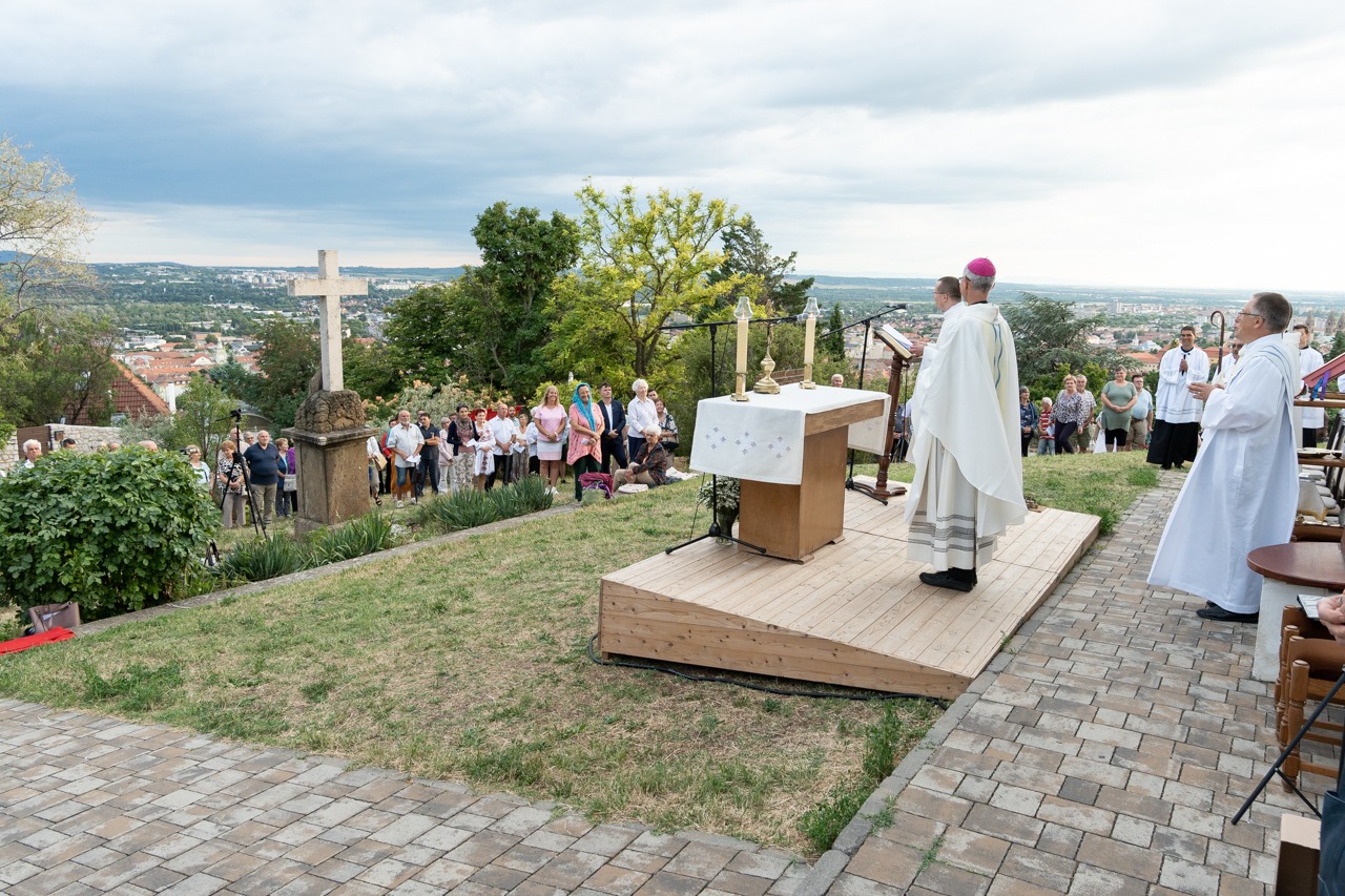 Havas Boldogasszony római üzenete az volt, hogy építsenek templomot ott, ahol a Szűzanya mondta. A helyet az Úr jelölte ki a csodával, de az építés az ember feladata volt. A Jóisten felszabadítja az embert, rádöbbenti arra, mit kell tennie, aztán a maga erejéből és szabadsággal cselekedve bazilikát épít Rómában és itt, Pécsett, a város felett és megmutatja a hit titkait – mutatott rá a segédpüspök.